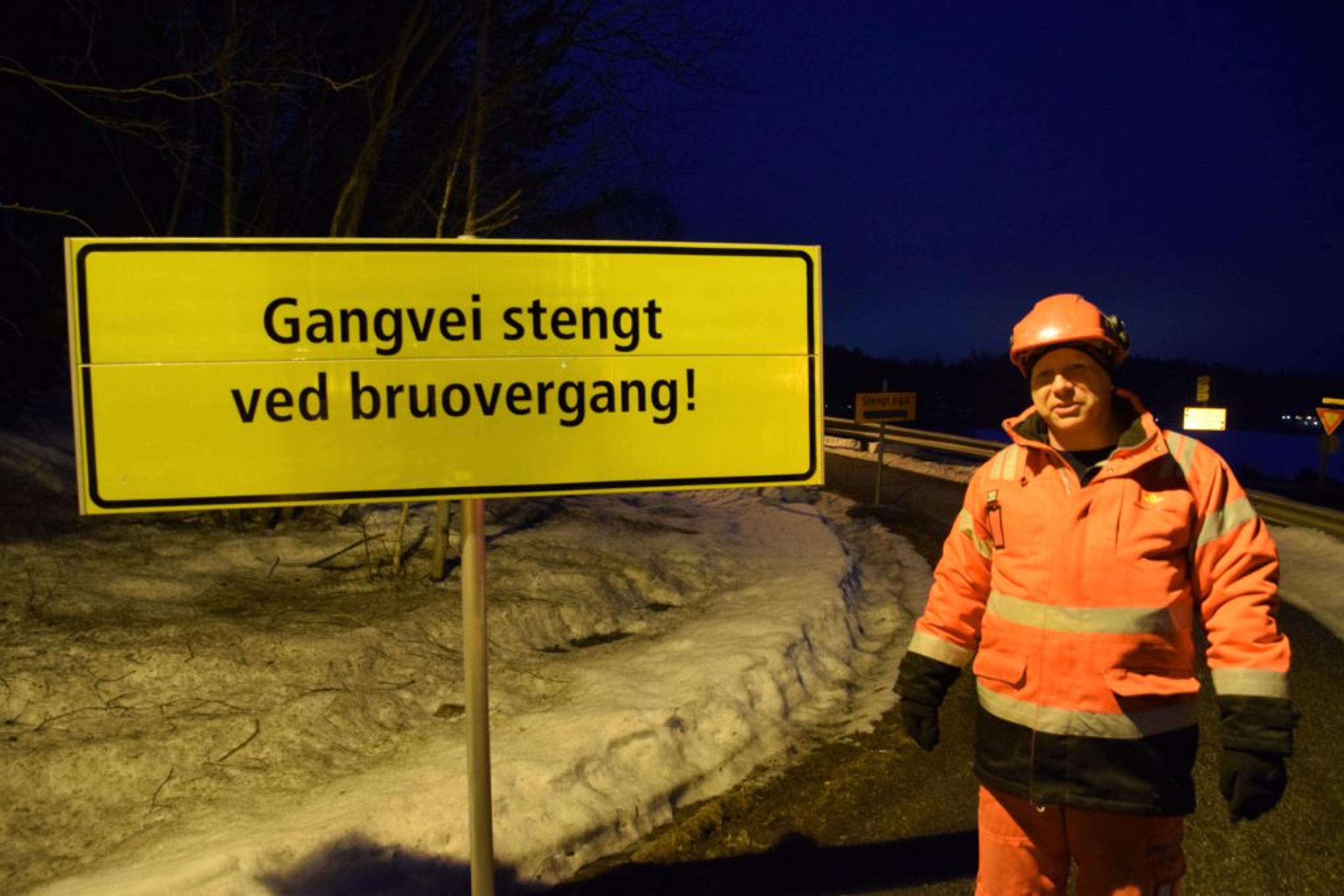 SKILTET STÅR FRAM TIL MANDAG: Det forteller Terje Bergan, bruseksjonen i Statens vegvesen Region sør. Foto: Stian Ormestad.