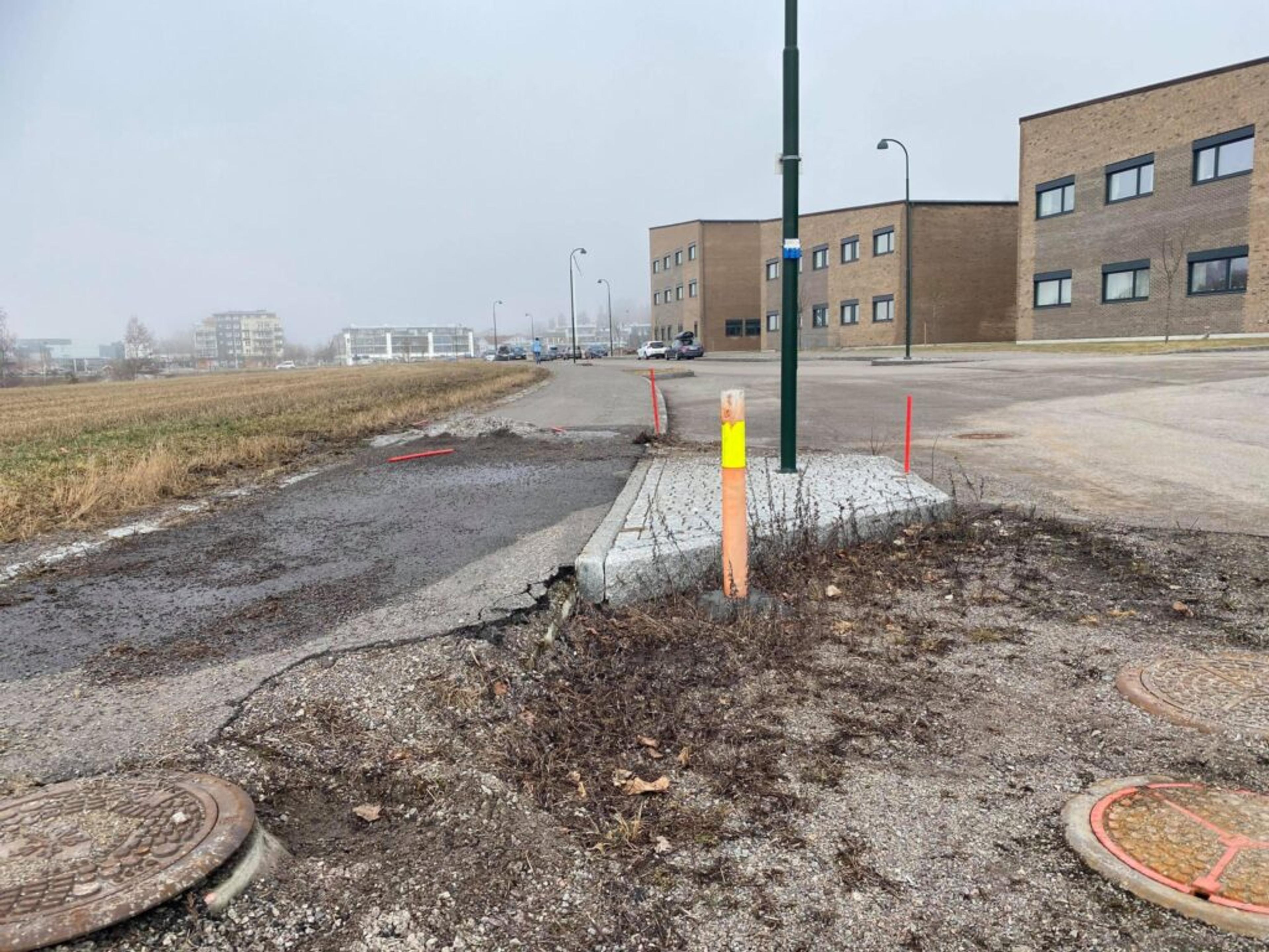 Noen hvite striper, lavere kantsteiner, og vipps så unngår man farlige situasjoner. Ansvaret ligger hos kommunen, for dette er en kommunal vei.