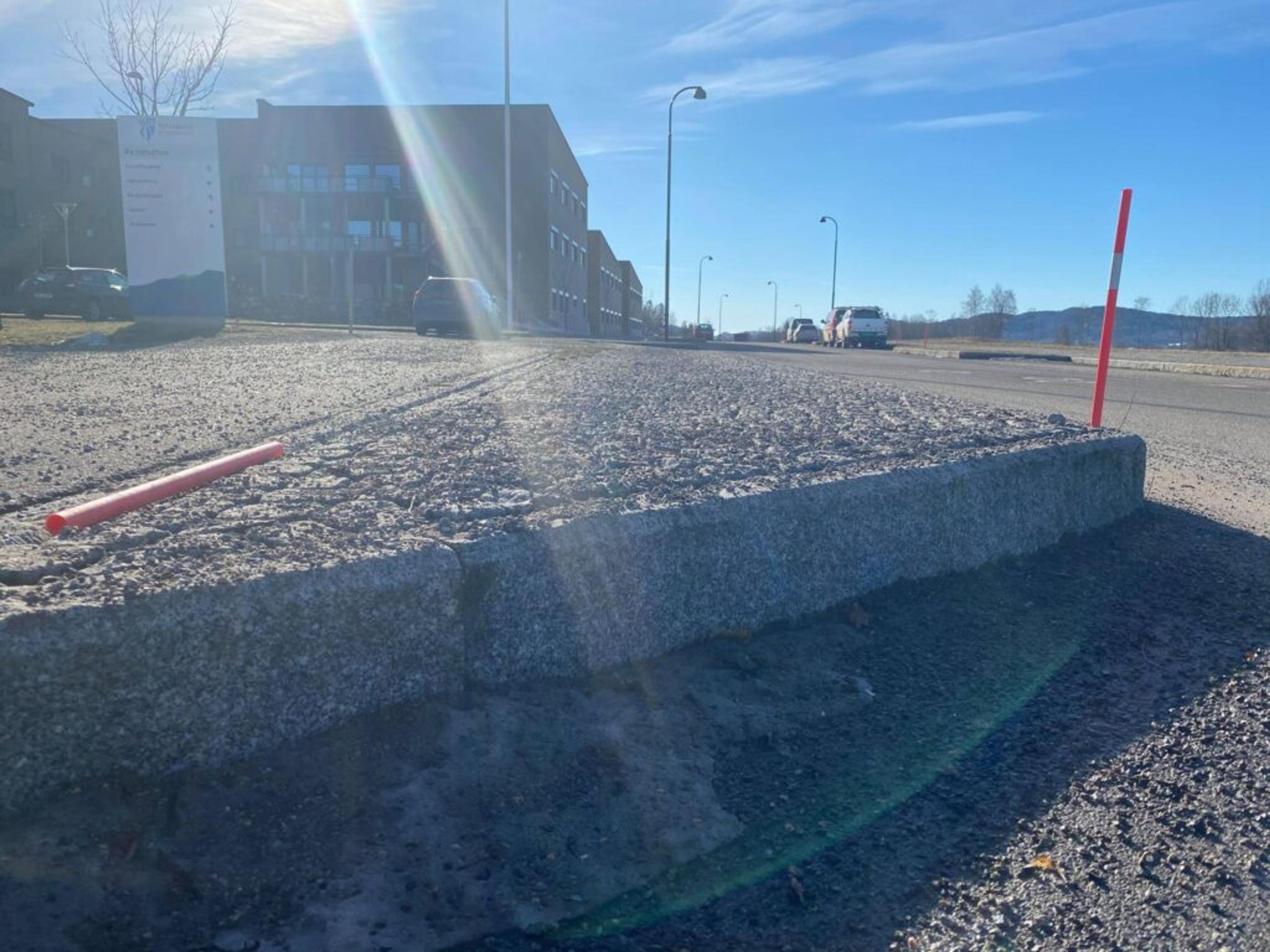 HØYE FORTAUSKANTER: Slik er det på begge sider av veien forbi Re helsehus. Foto: Stian Ormestad.