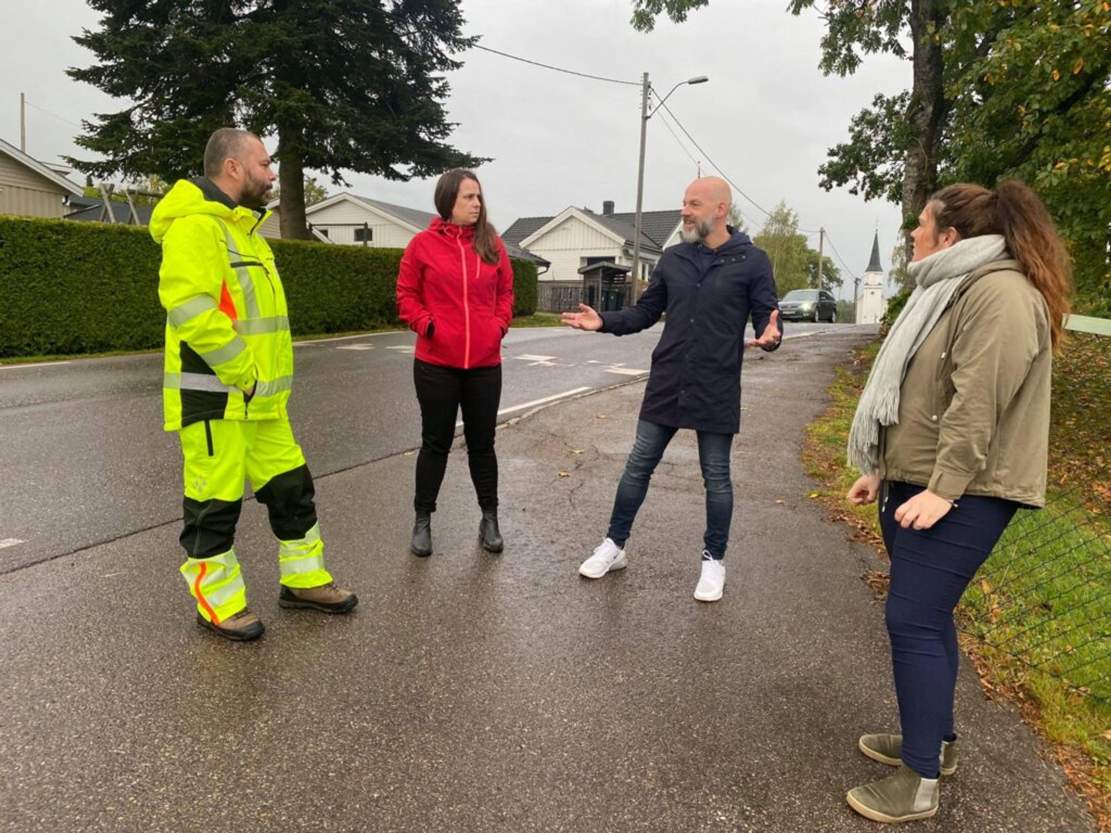 ENIG OM Å VÆRE UENIG: Dagens befaring ved Solerød skole ga ingen umiddelbar løsning på det eldgamle problemet. Foto: Stian Ormestad.