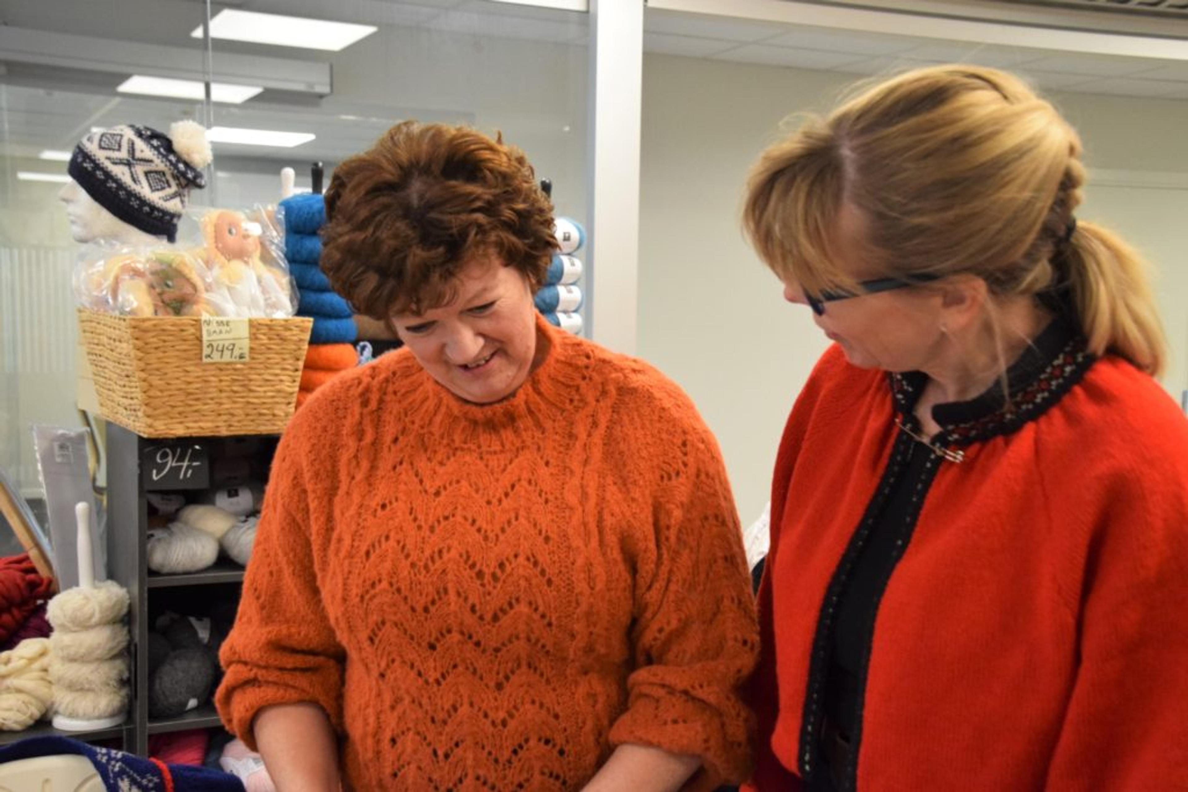 FAGLIGE RÅD: Det er noe eget å kunne se og kjenne på garnet, og få med seg gode råd på kjøpet, mener Gro på Garnbunten. Det får du neppe i en nettbutikk. Foto: Stian Ormestad.