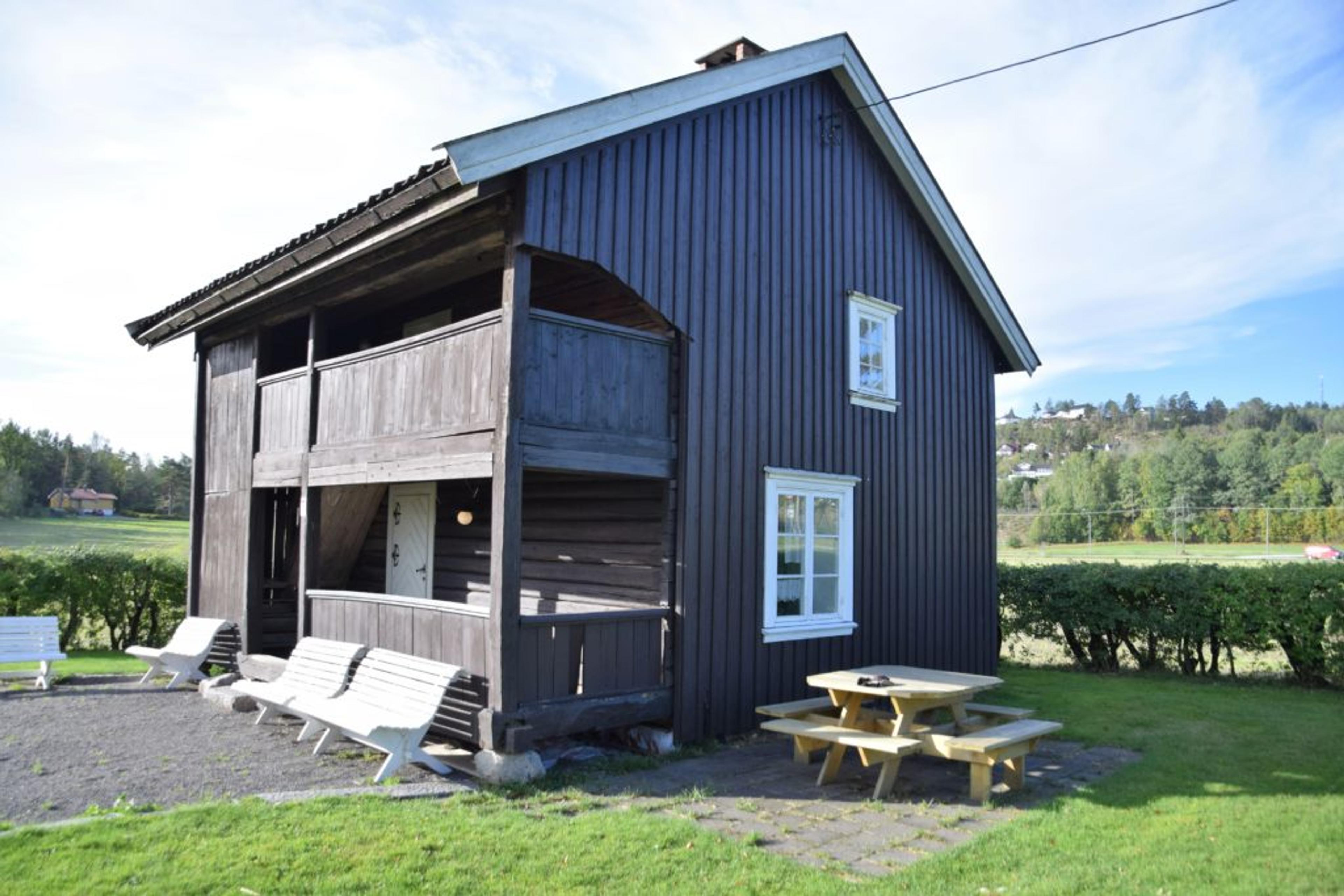 LUKASSTUA: En av de eldste bygningene i Re, flytta fra Fon på midten av 1980-tallet. Foto: Stian Ormestad.