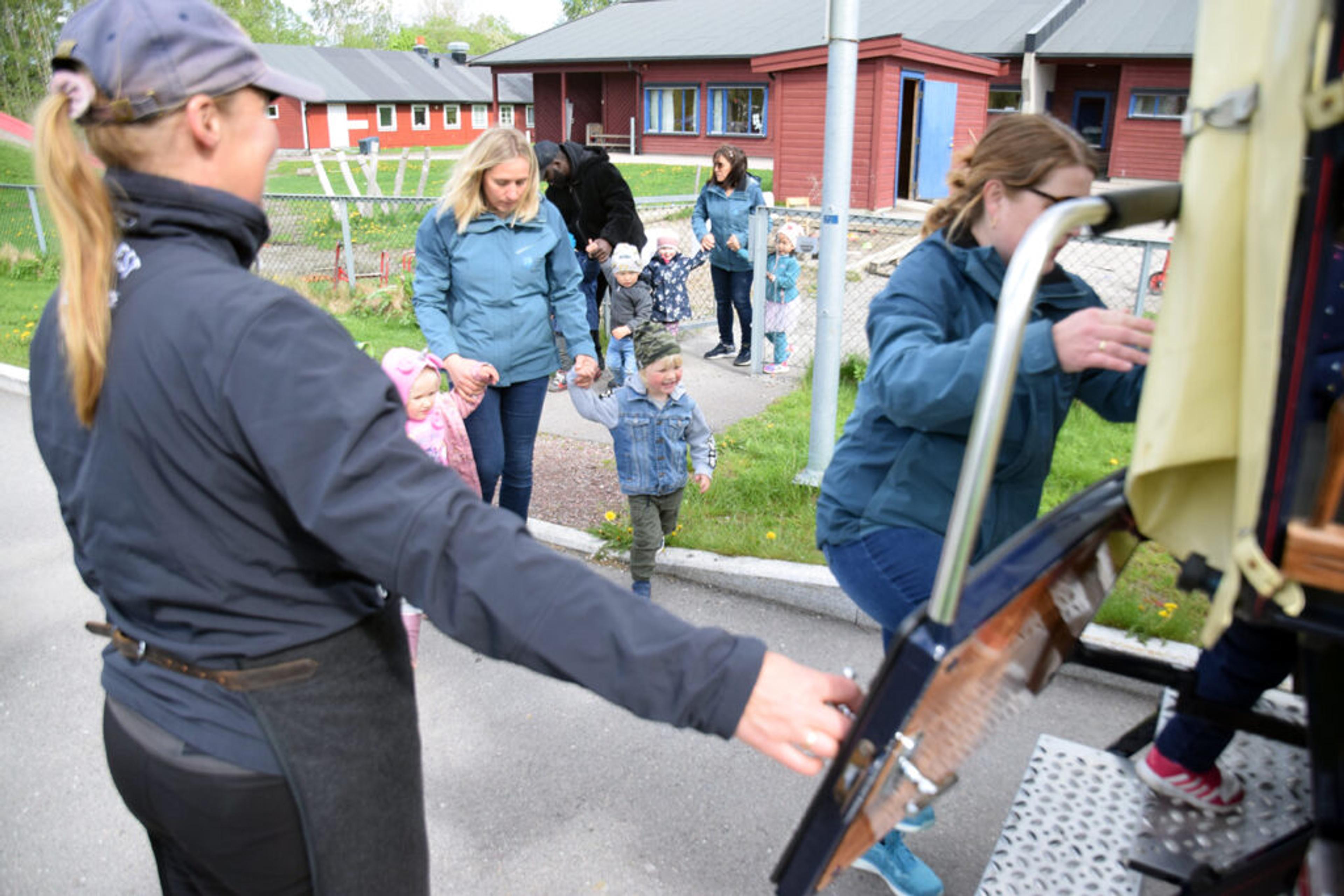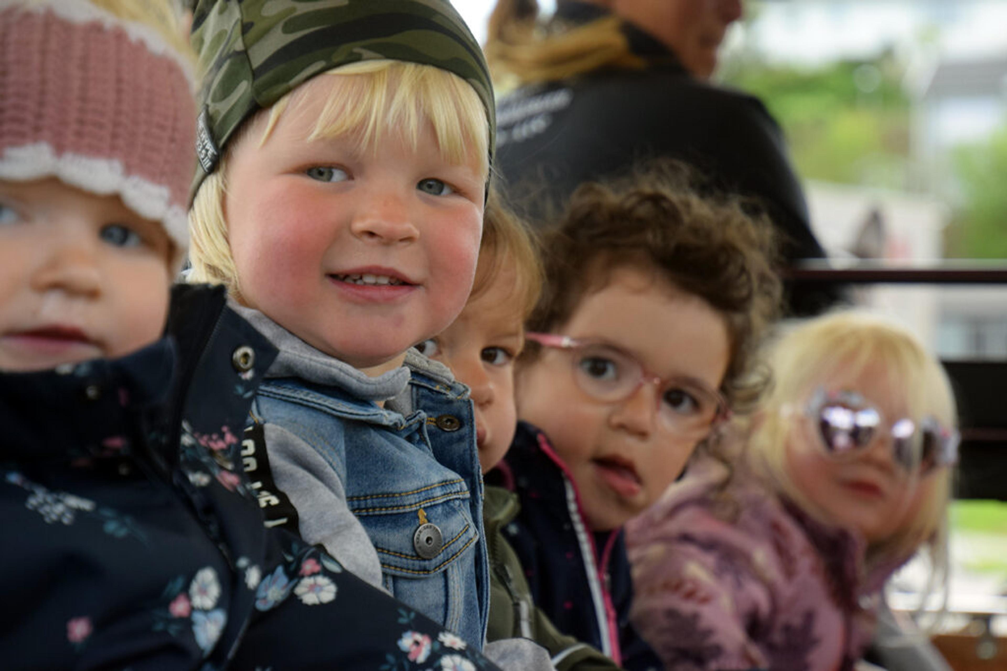 HADE! Barnehagebarna vinker hade og er spente på turen Revetal rundt. Eller til Bergen? Foto: Stian Ormestad.