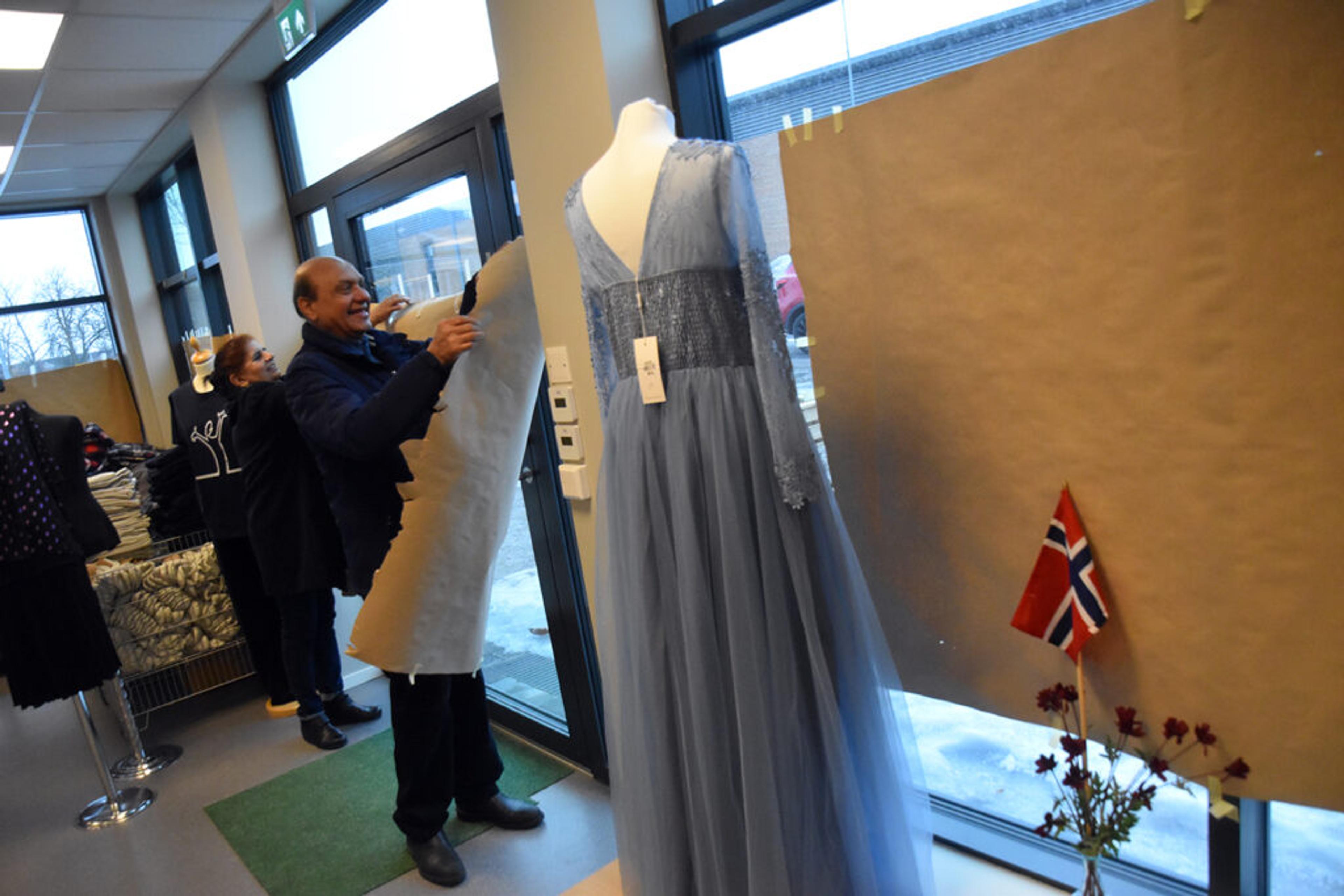 STRAKS ÅPNINGSFEST! Surinder Paul (67) og Sushil Kanta (60) eier flere klesbutikker, den siste i rekken blir Re tekstil i Gamleveien 6 på Revetal. Foto: Stian Ormestad, ReAvisa.