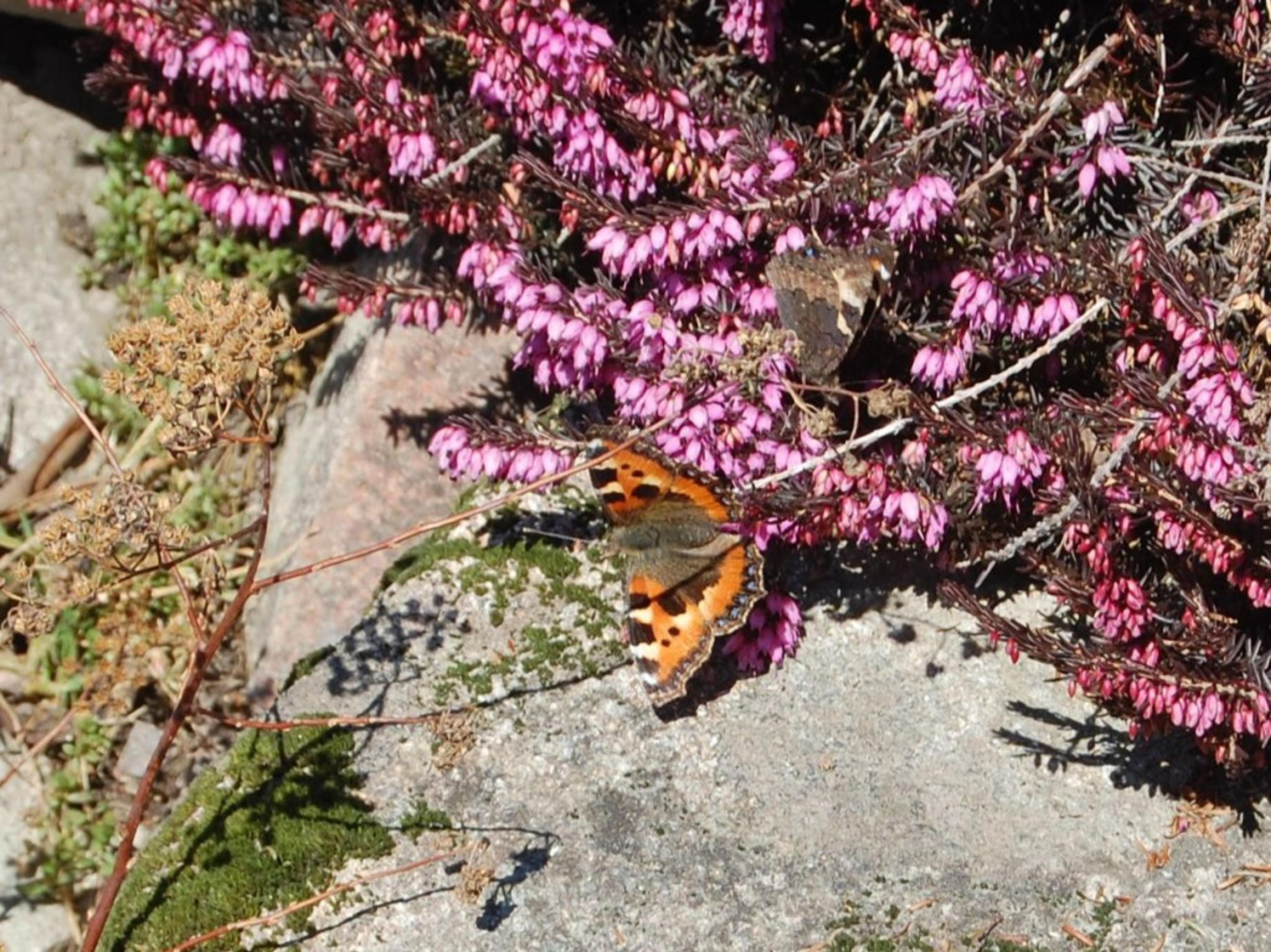 VÅRTEGN: Neslesommerfugler koser seg i en tue med vårlyng i Bergsåsen. Foto: Håkon Westby.