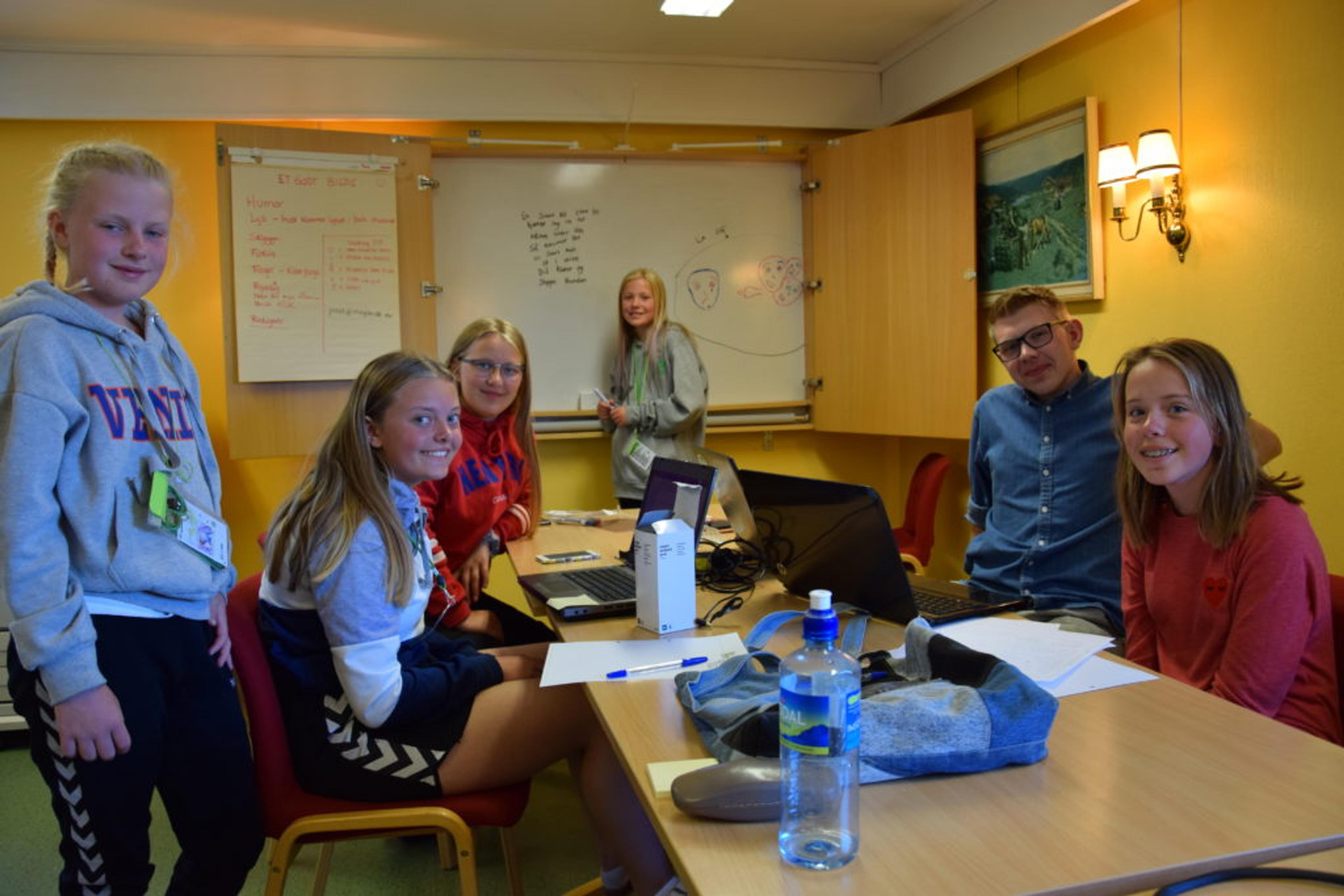 LEIRAVISA: Redaksjonen besto av , fra venstre: Emma Svendsrød, Flittig 4H, Mathea Olavsen, Hjelpsom 4H, Marlene Sofie Wallumrød, Hjelpsom 4H, Oda Gram, Konvallen 4H, Håvard Bjerke (redaktør), Rapp 4H, og Michelle Goudsbloem Lian, Djerv 4H. Foto: Håkon Westby.