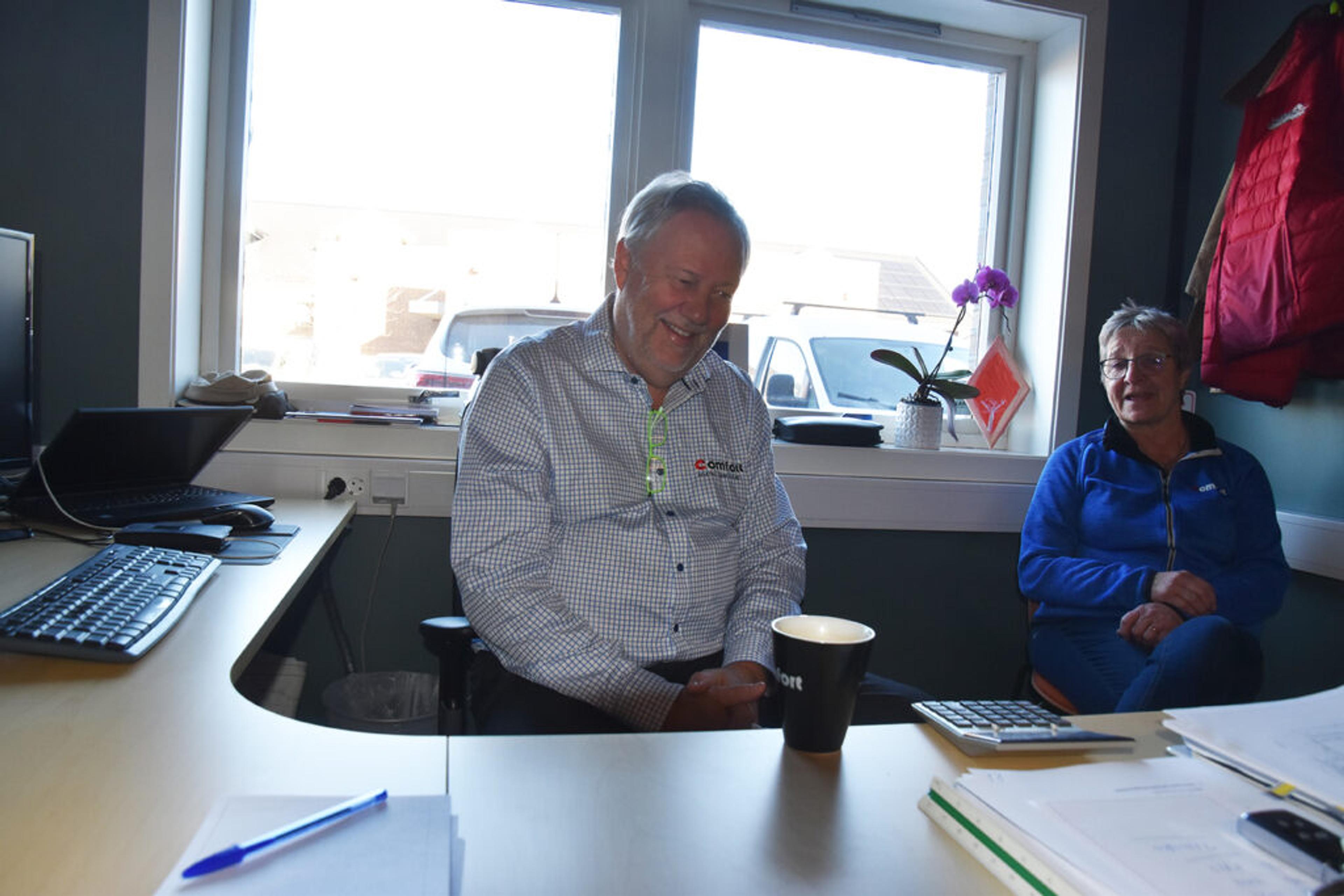 KONTORFELLESSKAP: Ekteparet Bergljot Woll (68) og Georg Gran (66) deler det meste av dagene sine, på jobb og fritid. Det de har skapt sammen, er intet mindre enn et lokalt bedriftseventyr. Foto: Stian Ormestad, ReAvisa.
