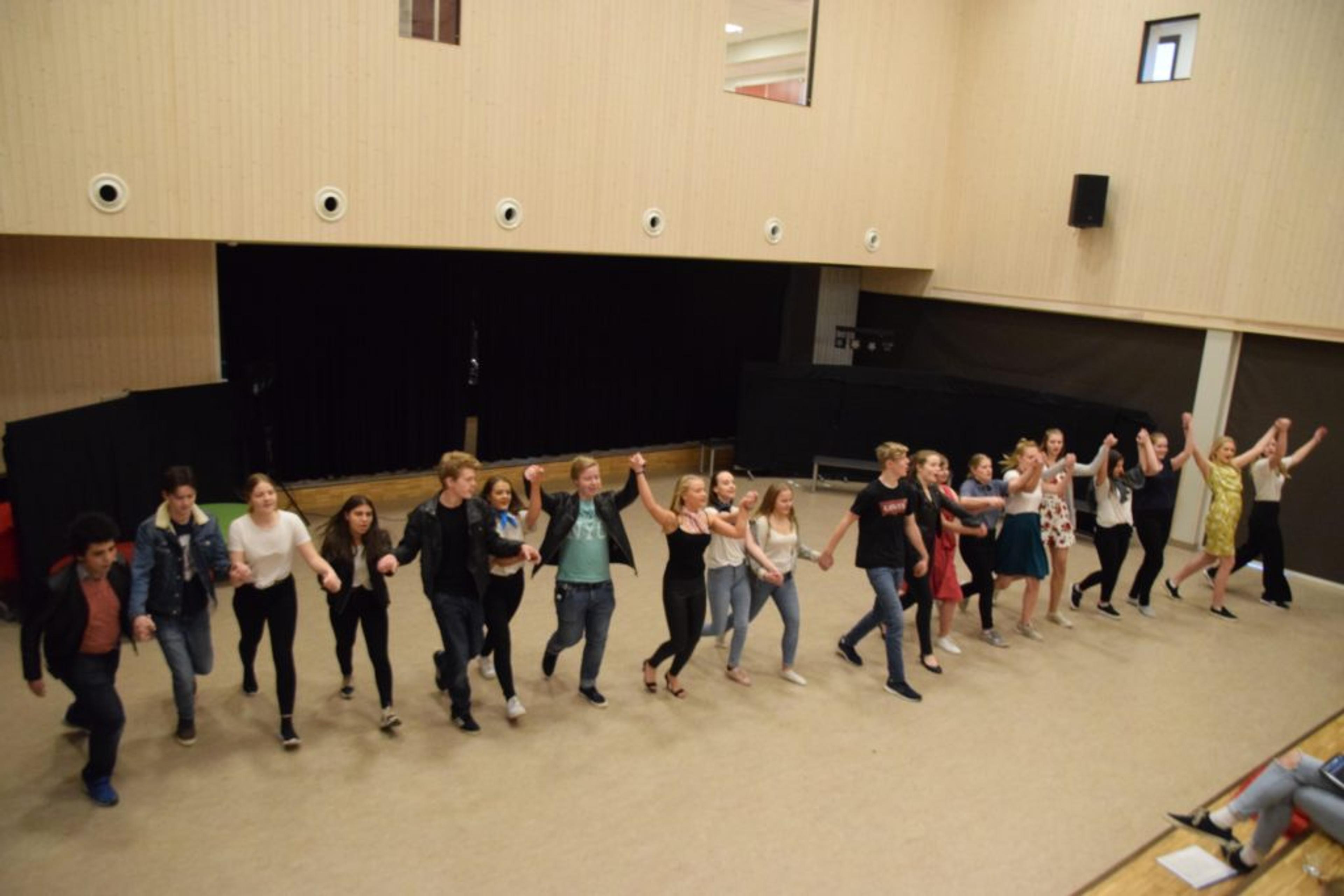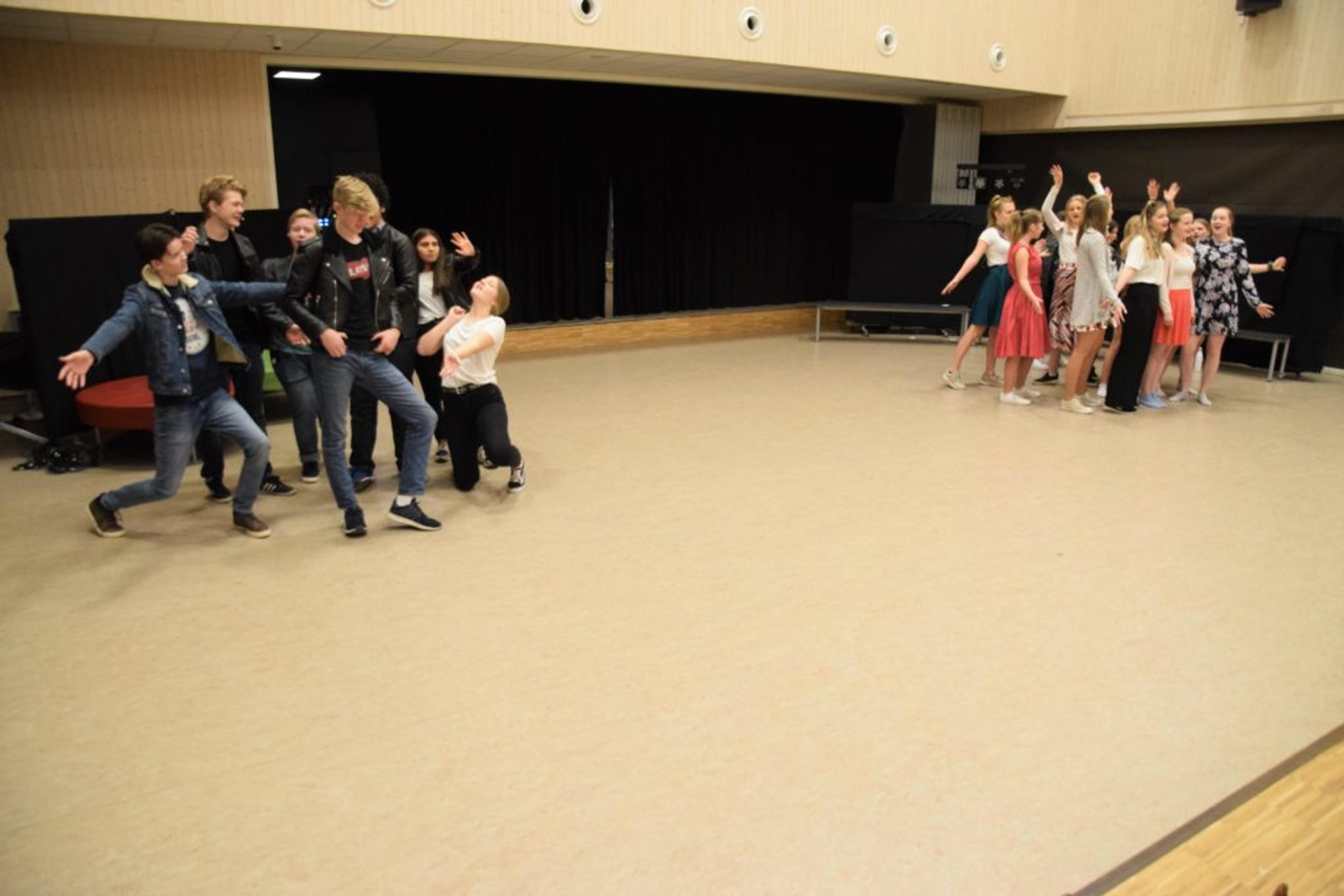 ALL IN: 10. klassingene imponerer stort. Det er bare å glede seg til mandagens oppsetninger, når Revetal ungdomsskoles 50-årsbursdag skal feires. Foto: Stian Ormestad.