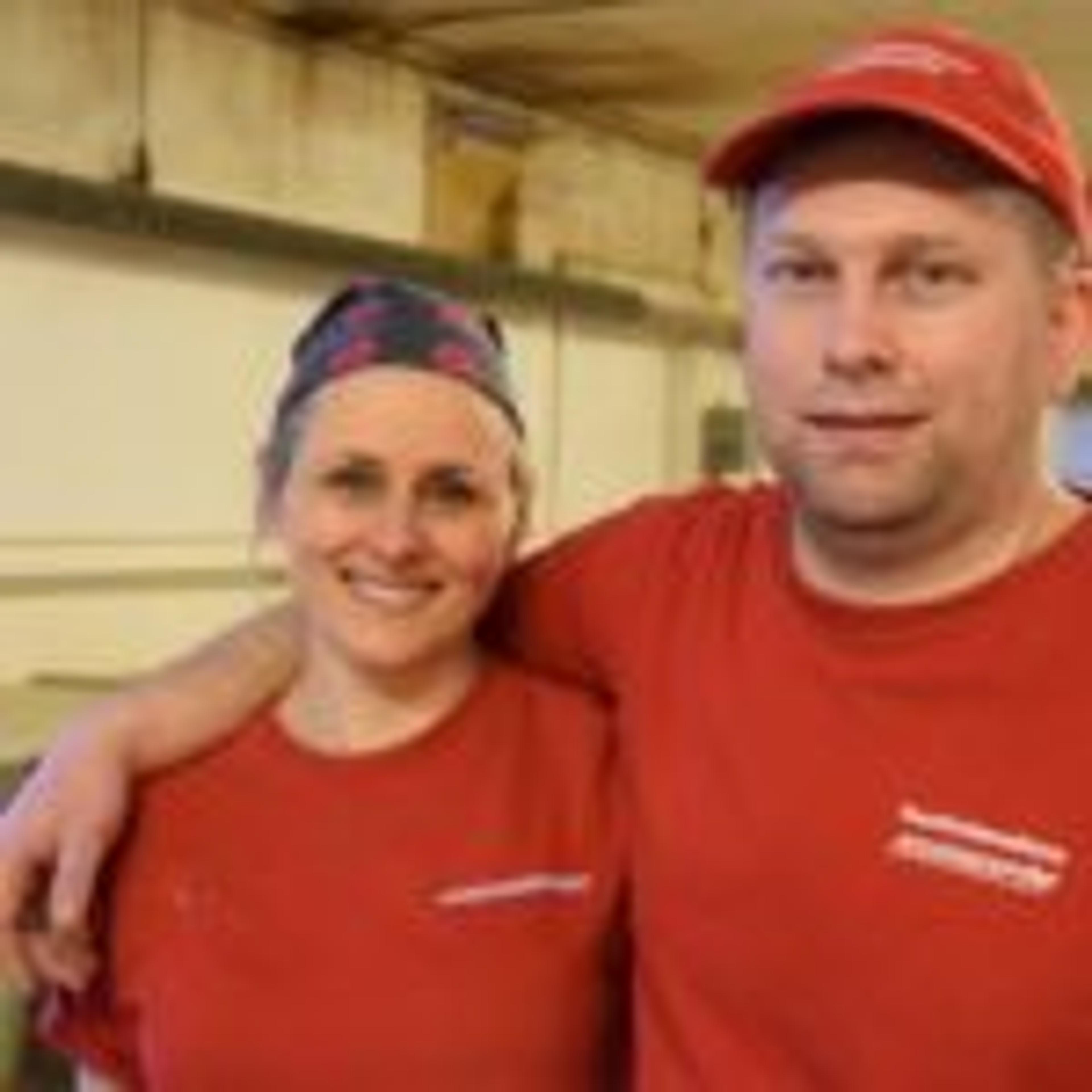 GRISEBØNDER: Astrid Kristin Holm (38) og Audun Flåtten (42) på Lefsrød gård. Foto: Stian Ormestad.