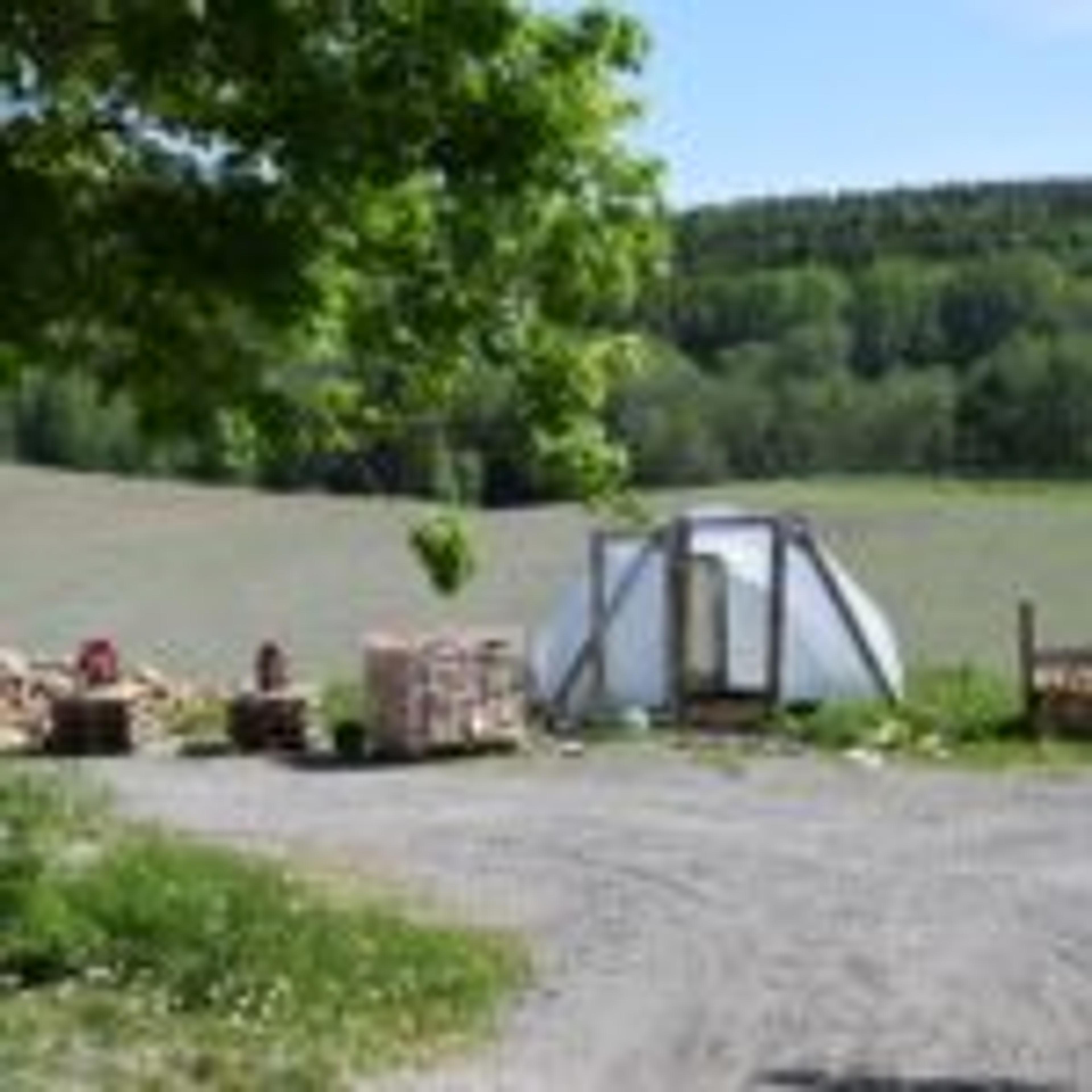 VEDPRODUKSJON OG DRIVHUS: Overalt bærer gården preg av landlig arbeid. Foto: Stian Ormestad.