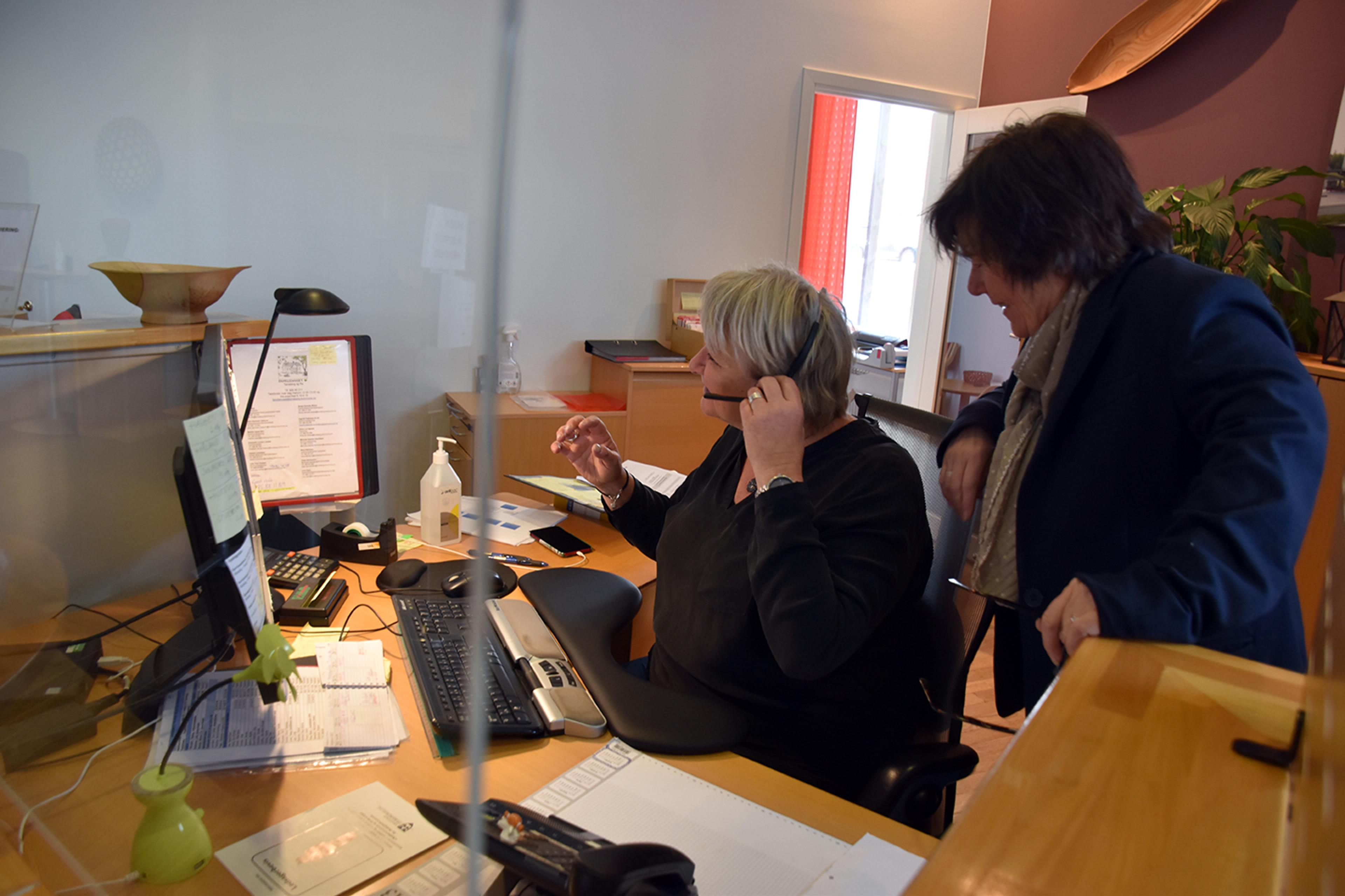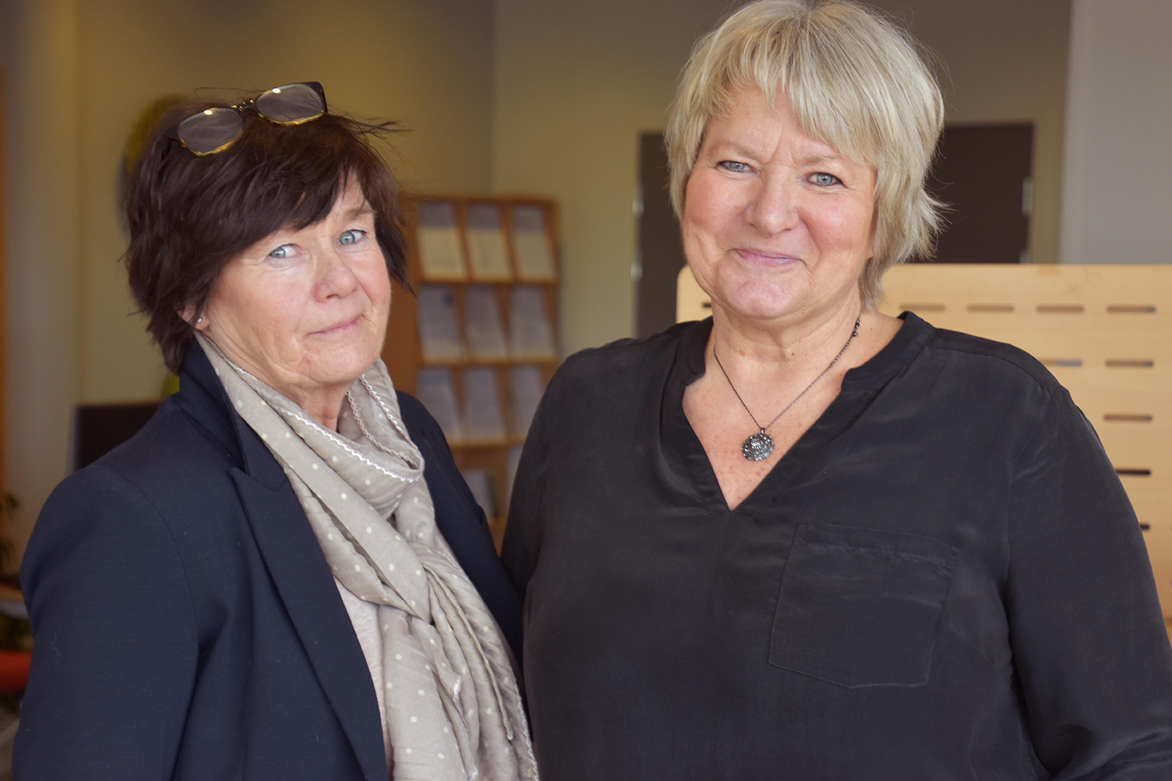 SERVICEDAMENE: Gry Adolfsen (60) og Lill Haugerud (60) har sitti i skranken i alle år. Foto: Stian Ormestad.