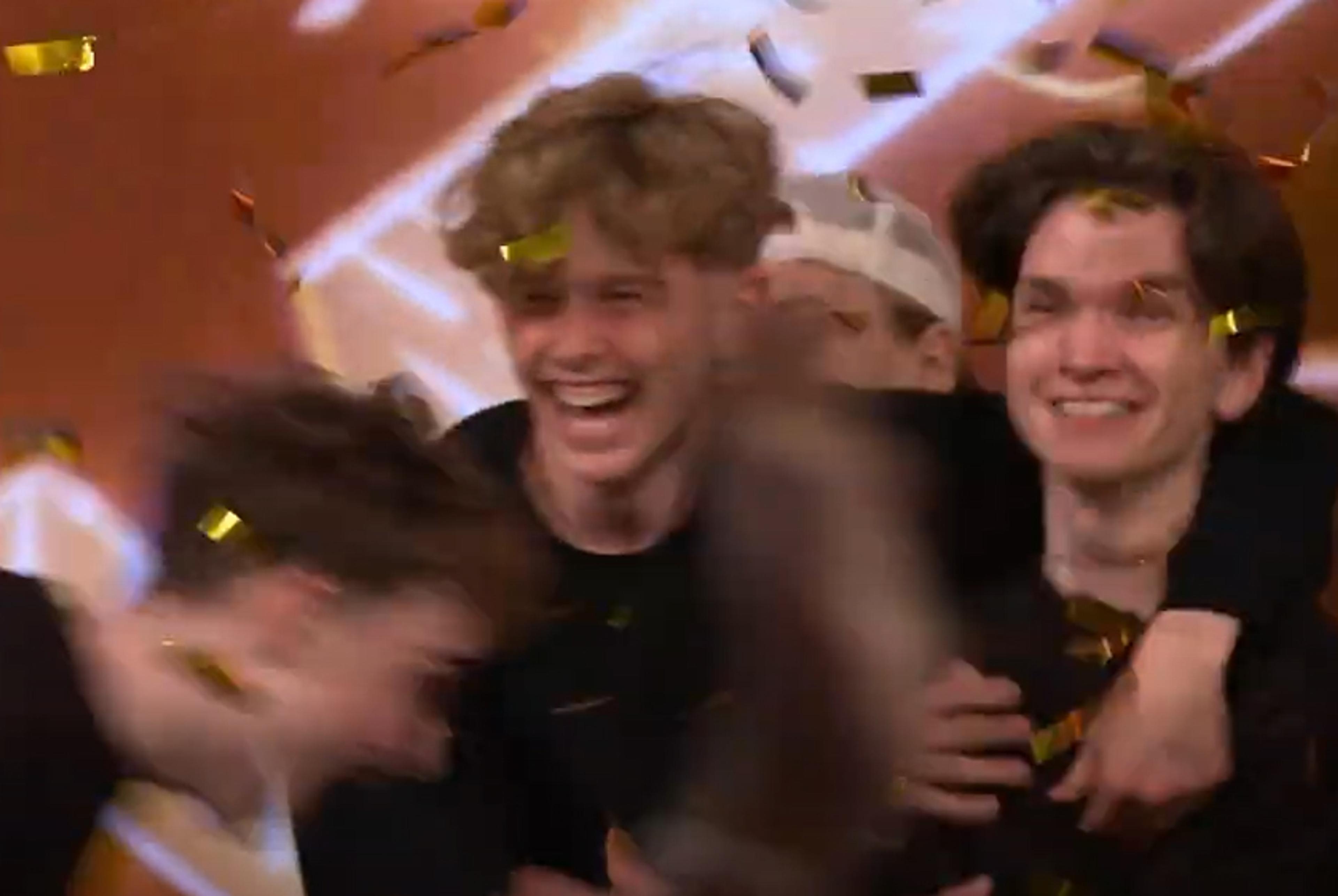 VIDERE! Kasper og crewet går direkte til semifinalen i Norske talenter med kveldens gullbillett. Foto: TV Norge.