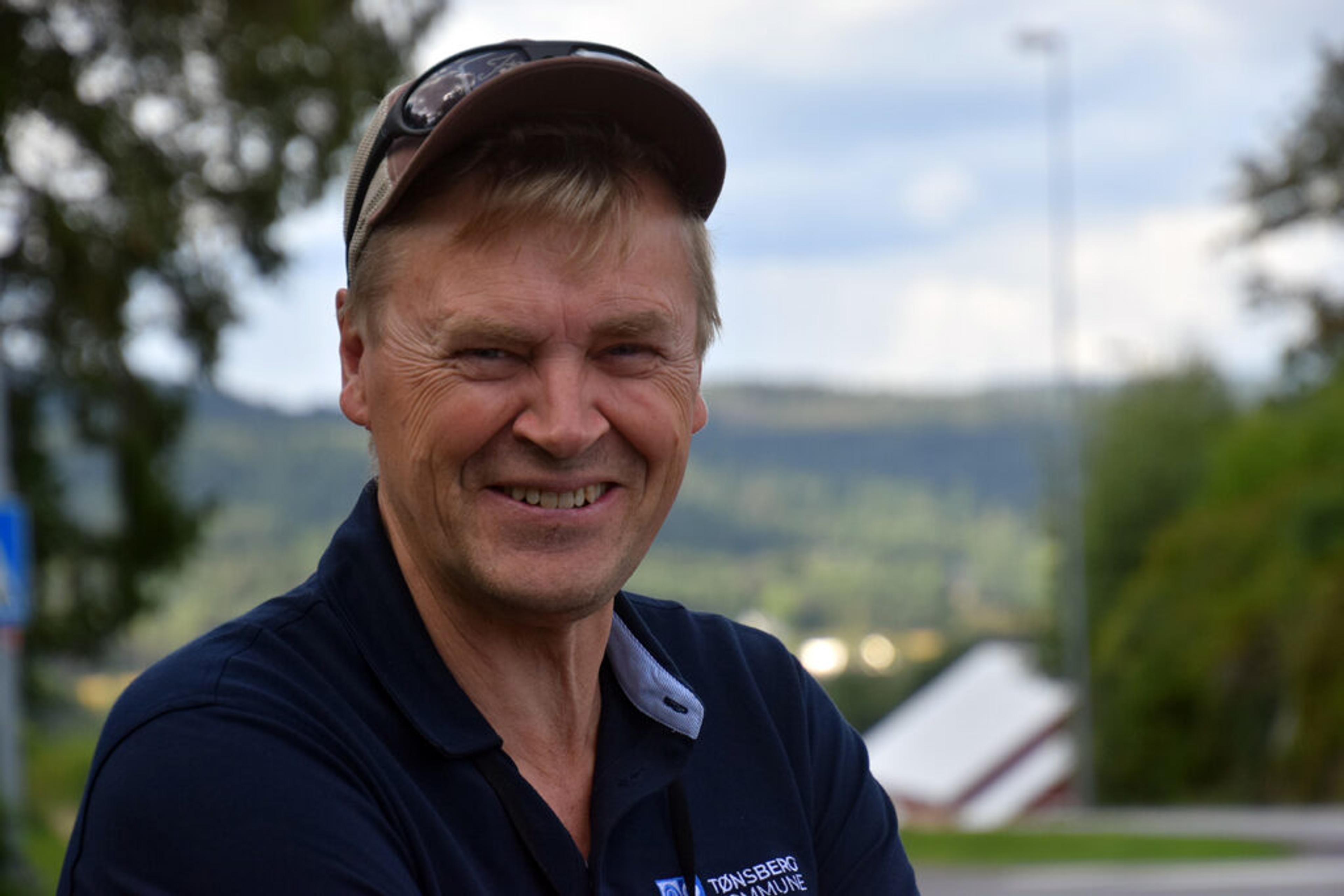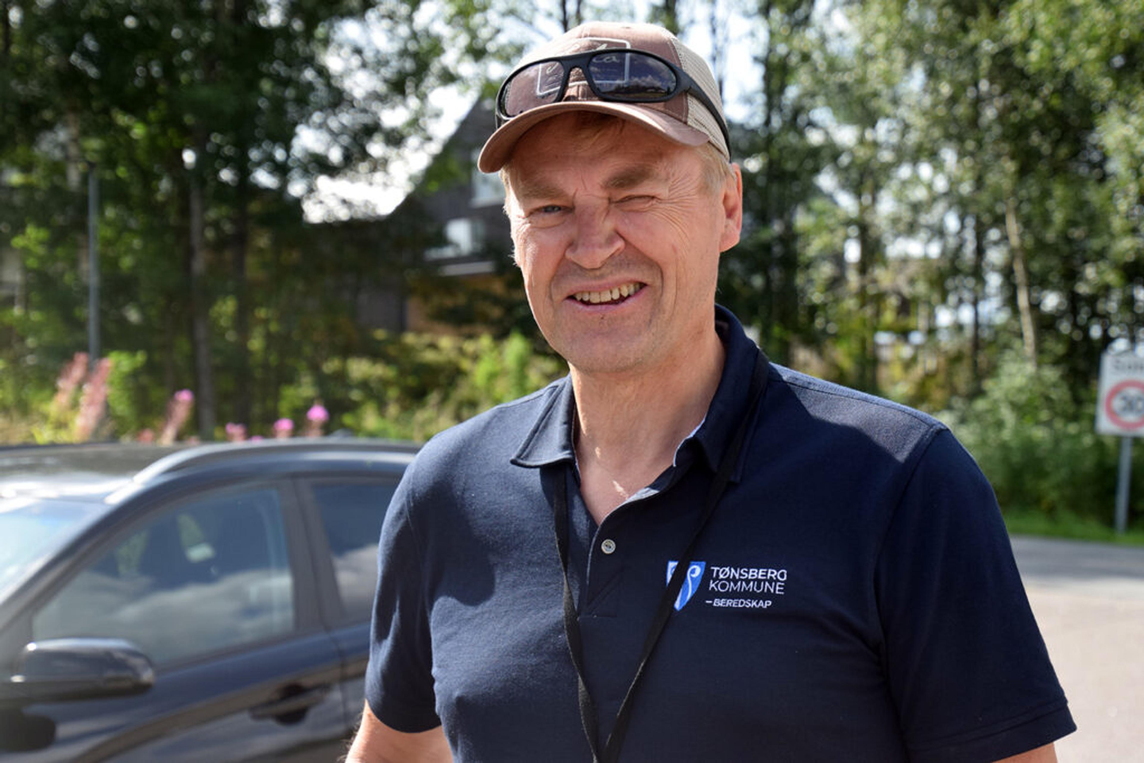 TRIVELIG JOBB: – Folk flest er flinke, og det er hyggelig å hilse på de aller, aller, aller fleste, forteller Hans Petter Gulliksen, tidligere lensmann i Re, nå smittevernkonsulent for Tønsberg, Færder og Holmestrand kommuner. Her på vei til flere korona-karantene-kontroller på Revetal denne uka. Foto: Stian Ormestad.