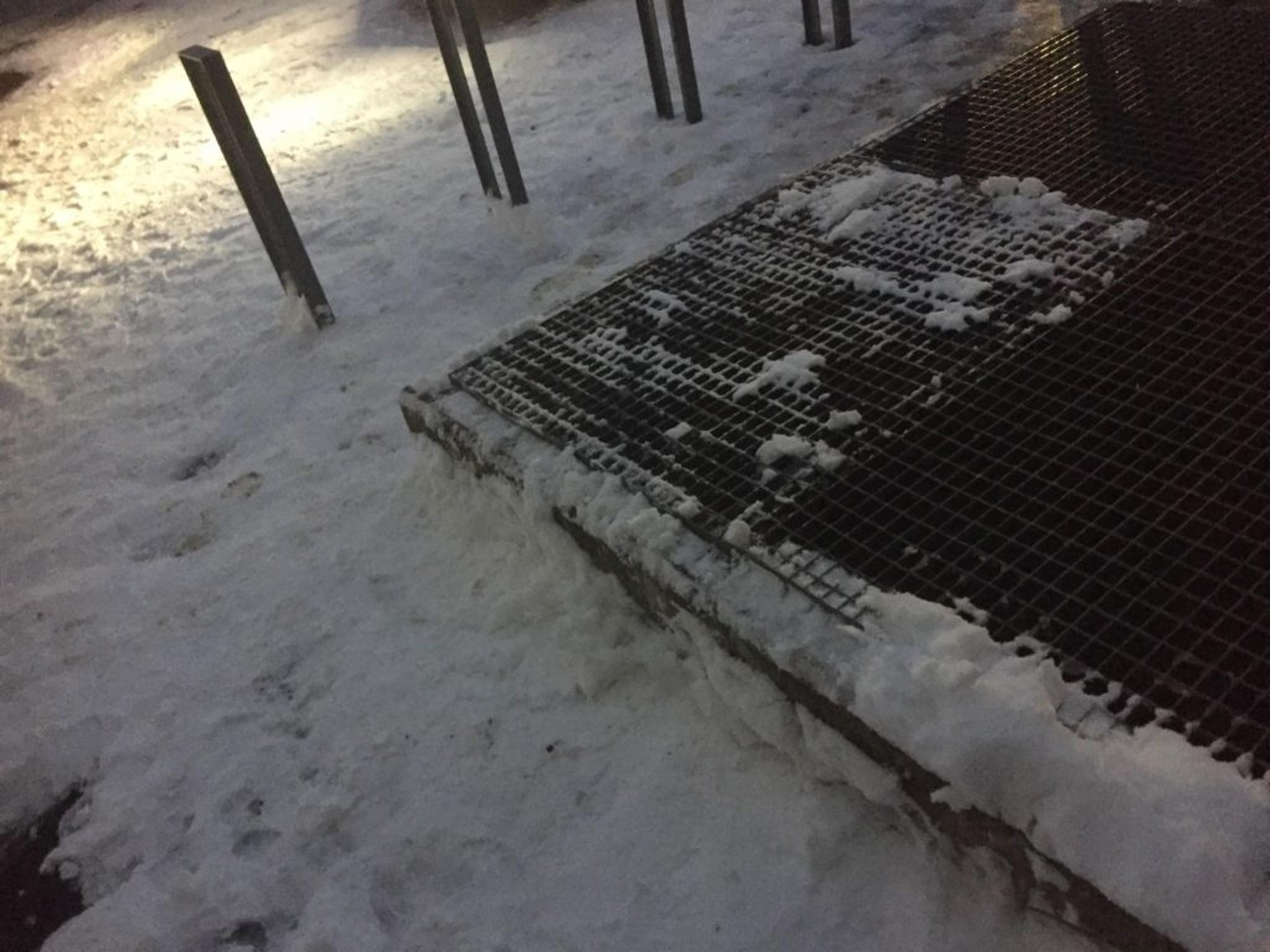 FALLULYKKE: Her falt en gutt ned i ei tre meter djup sjakt ved Revetal ungdomsskole. Foto: Stian Ormestad.