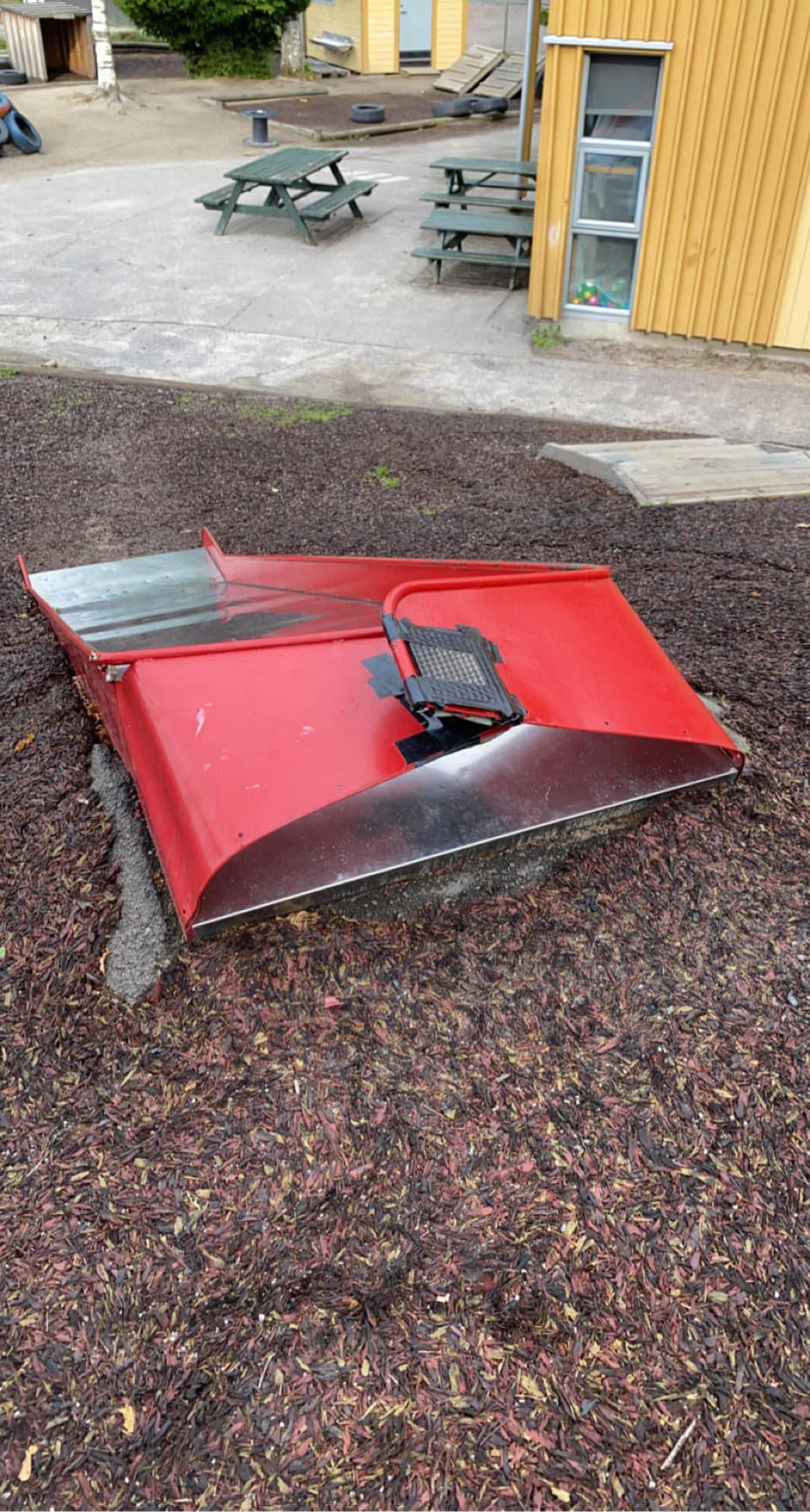 Det ble gjort forsøk på å rette den opp og lappe den sammen med tape, men det var fortsatt skarpe kanter – og derfor ikke forsvarlig å bruke, forteller hun.