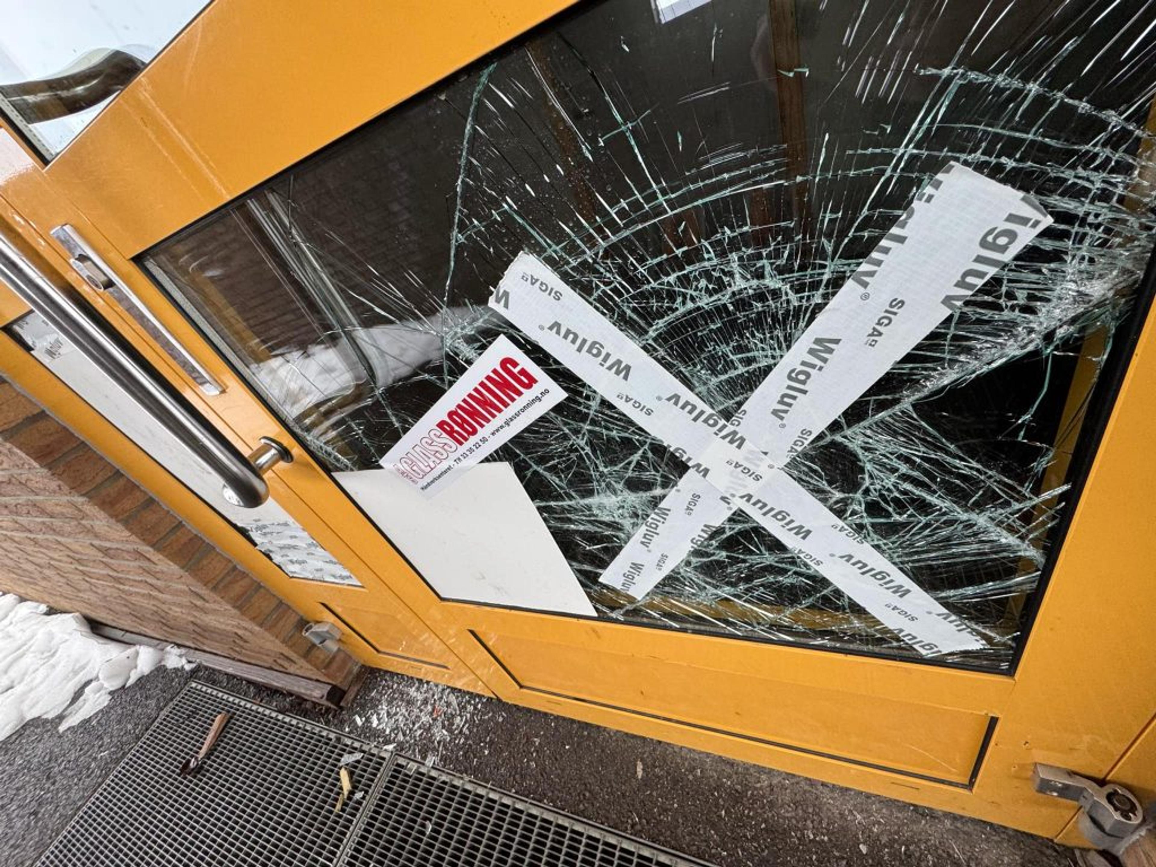 KNUST GLASS: Pøbler hadde vært på ferde sist helg – igjen. Da var det Vålehallen som fikk gjennomgå. Foto: Stian Ormestad, ReAvisa.