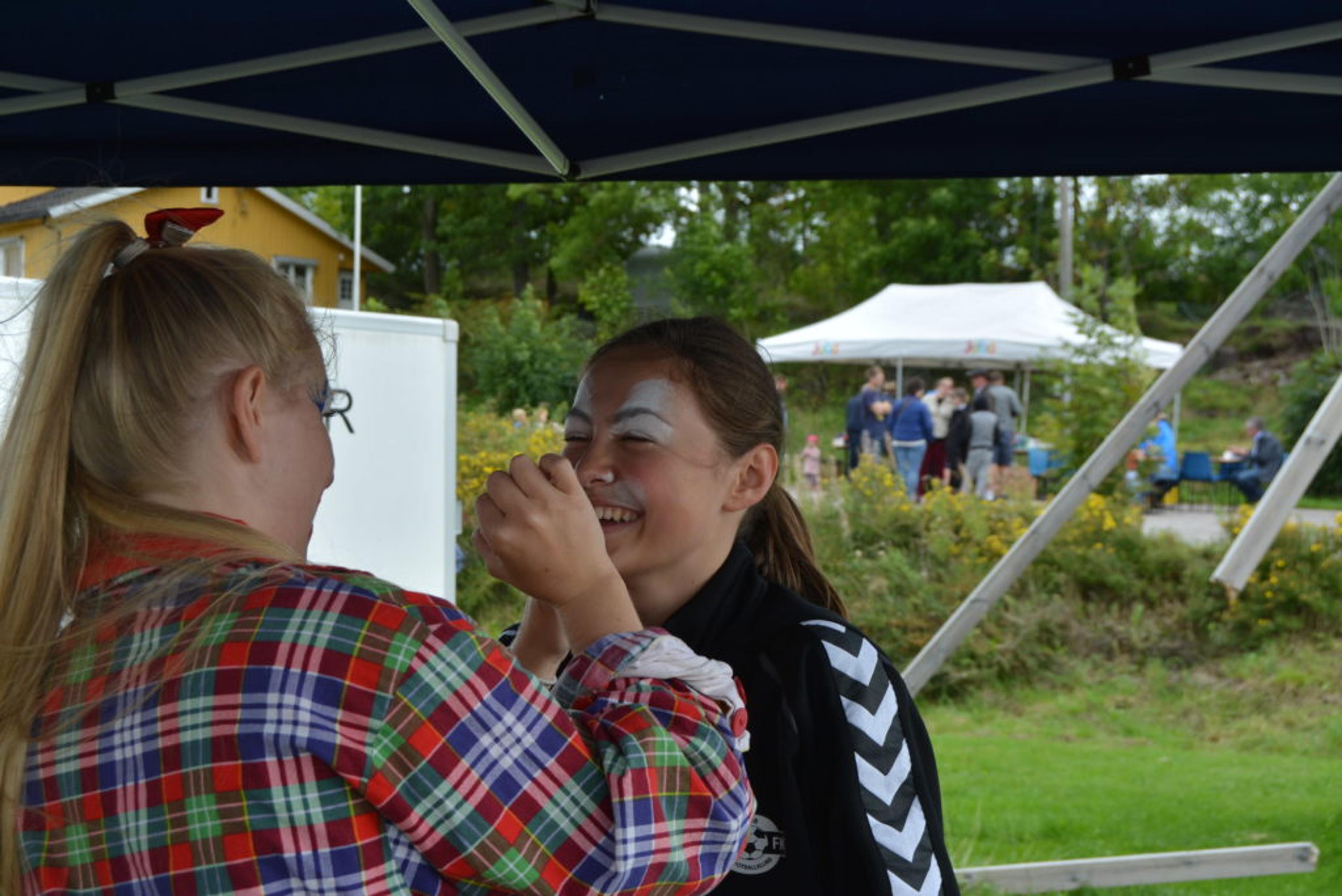 ANSIKTSMALING: Det er ikke bare barn som ble ansiktsmalt, her blir Nora Langved Edvardsen (13) transformert til en katt. Foto: Amalie Andersen.