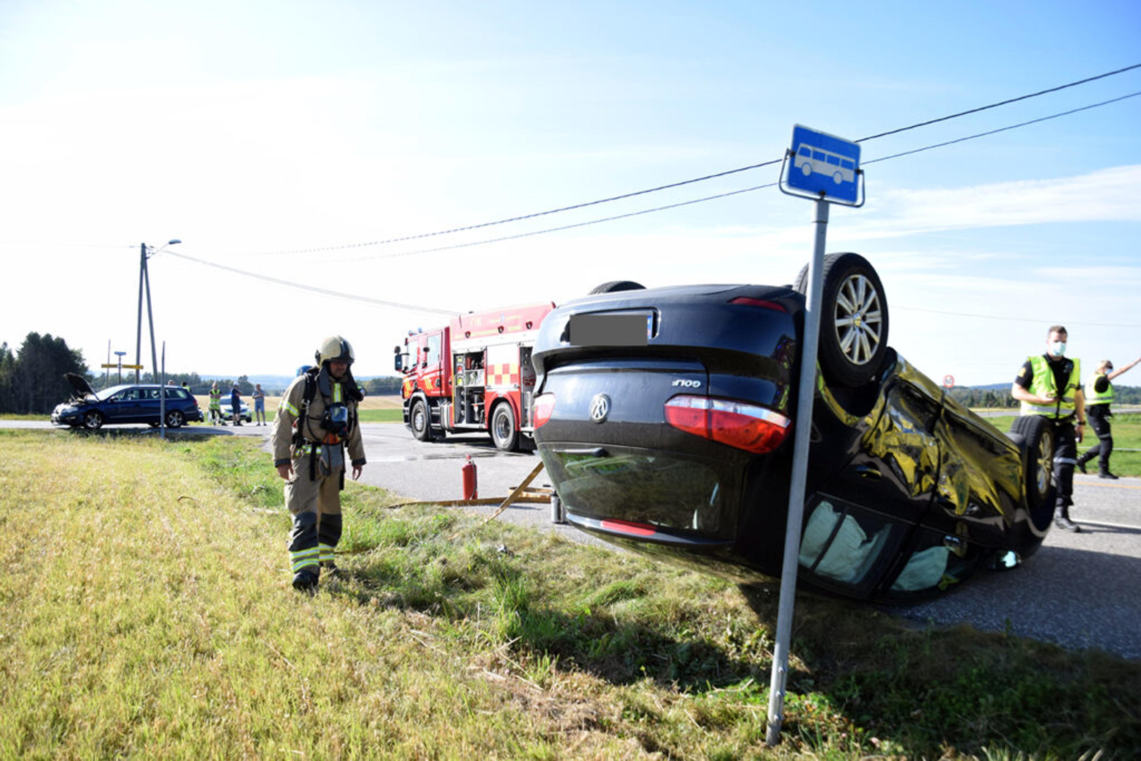 Så traff de hverandre hardt i Hengsrudkrysset, såpass hardt at Golfen gikk kast i kast og landa på taket nesten tredve meter fra der det først smalt.