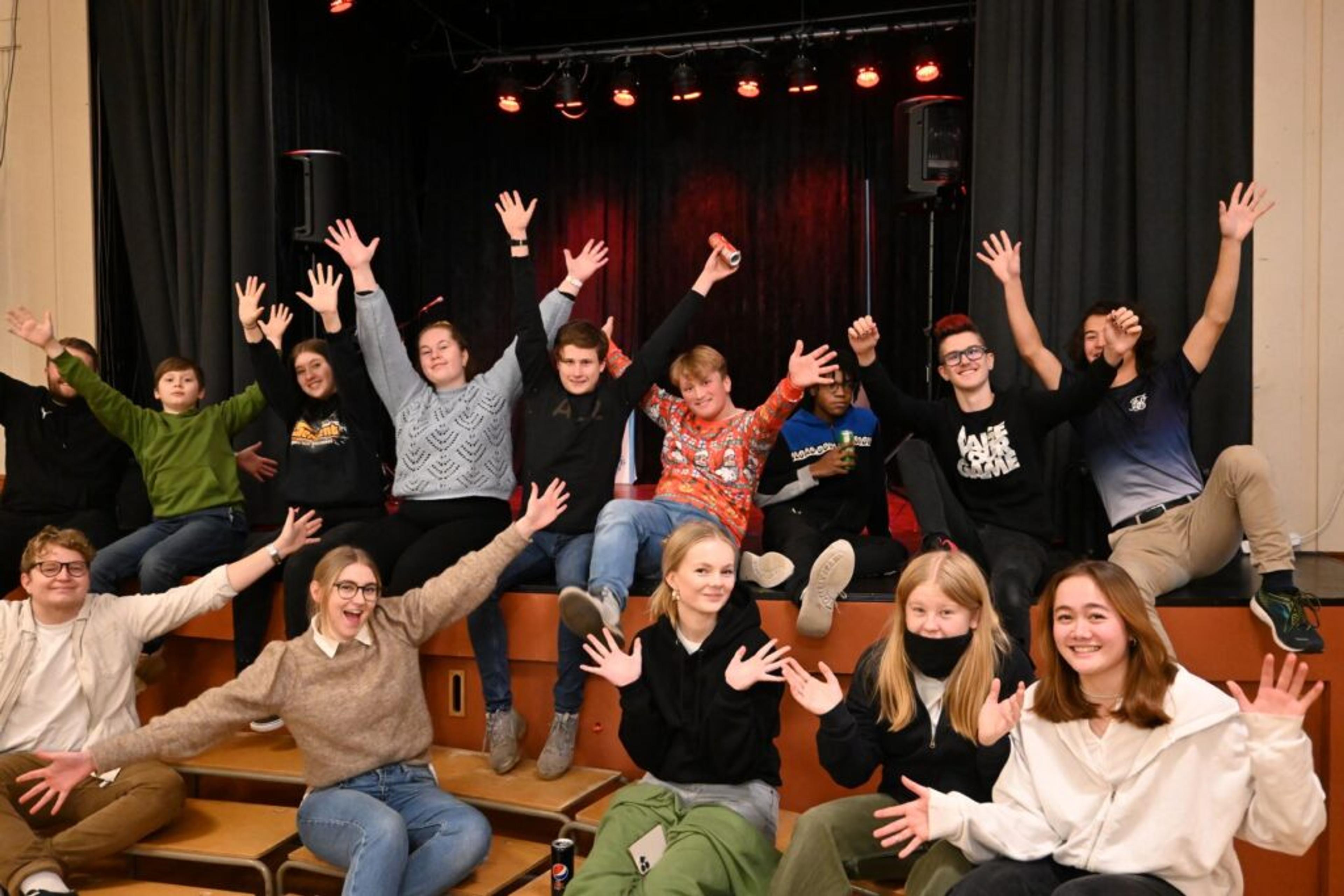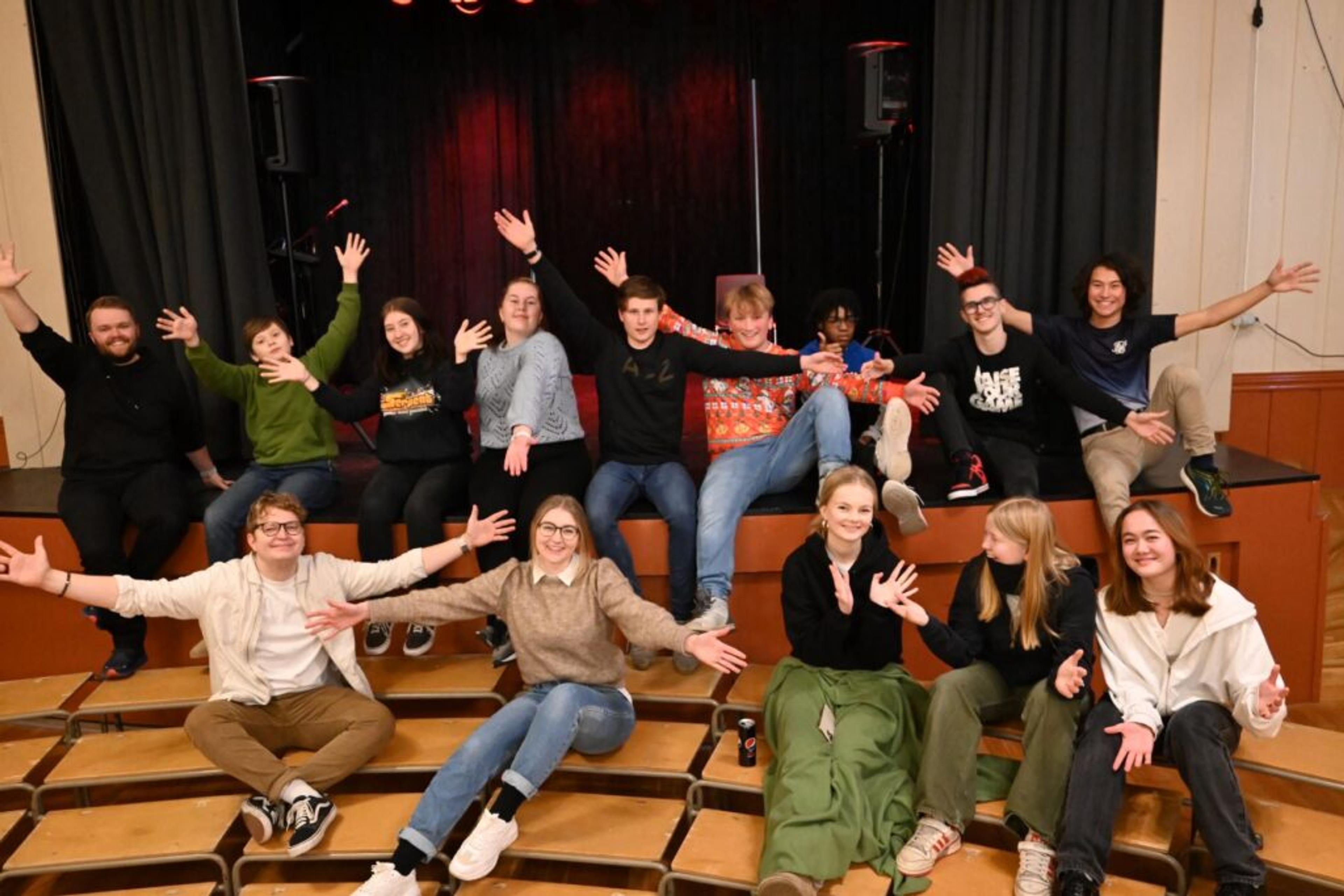ARMER OG BEIN: Det blir travelt på nyåret og utover tidlig vårpart for denne gjengen som setter opp ungdomsteater på Kulturhuset Elverhøy – og de får gjerne med seg flere ungdommer på moroa. Foto: Emma Sofie Gulbrandsen, ReAvisa.