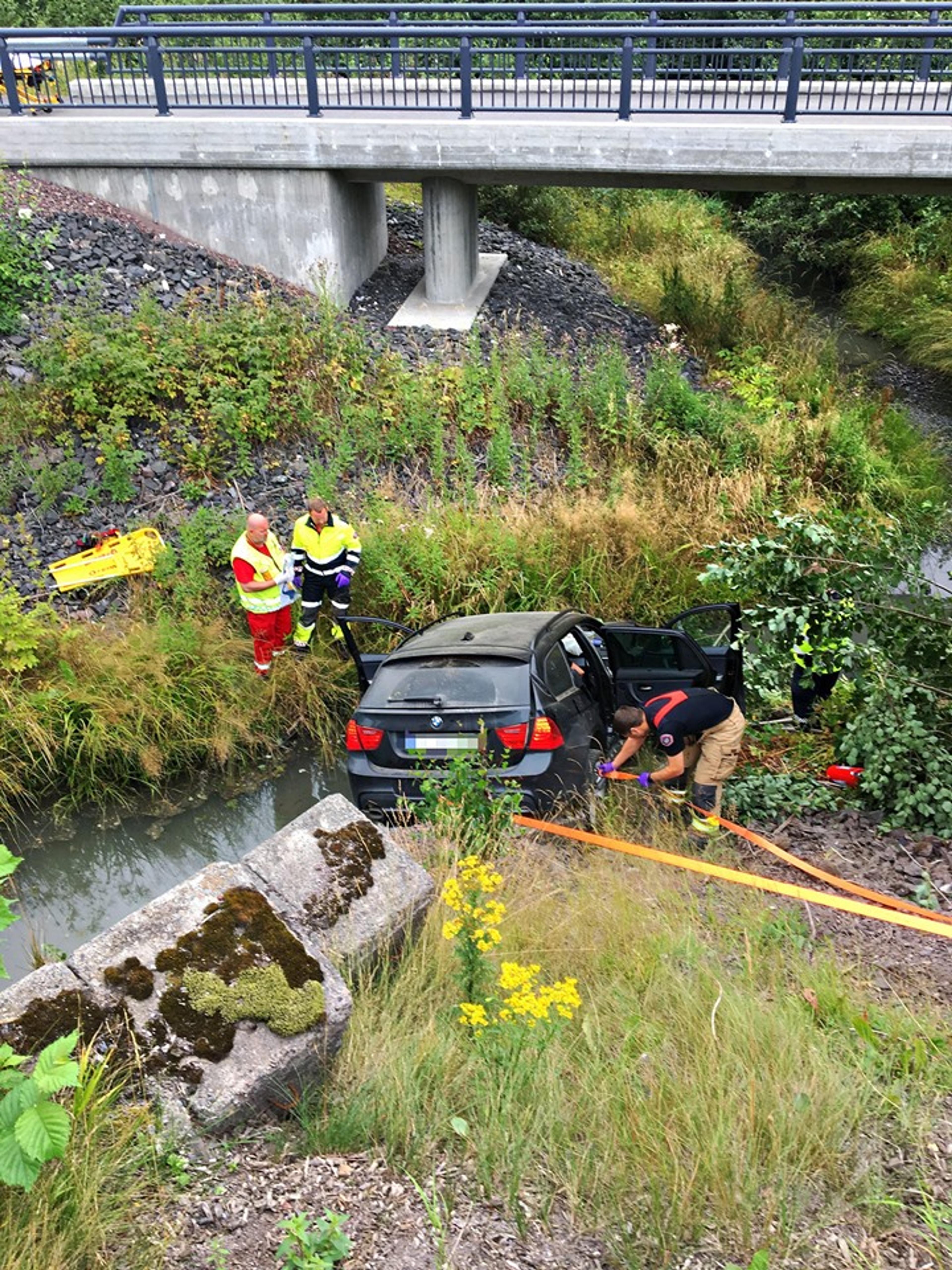 Mandag 5. august klokka 13.10 rykker alle nødetater ut etter melding om at en bil hadde kjørt ut på Knutstadveien.