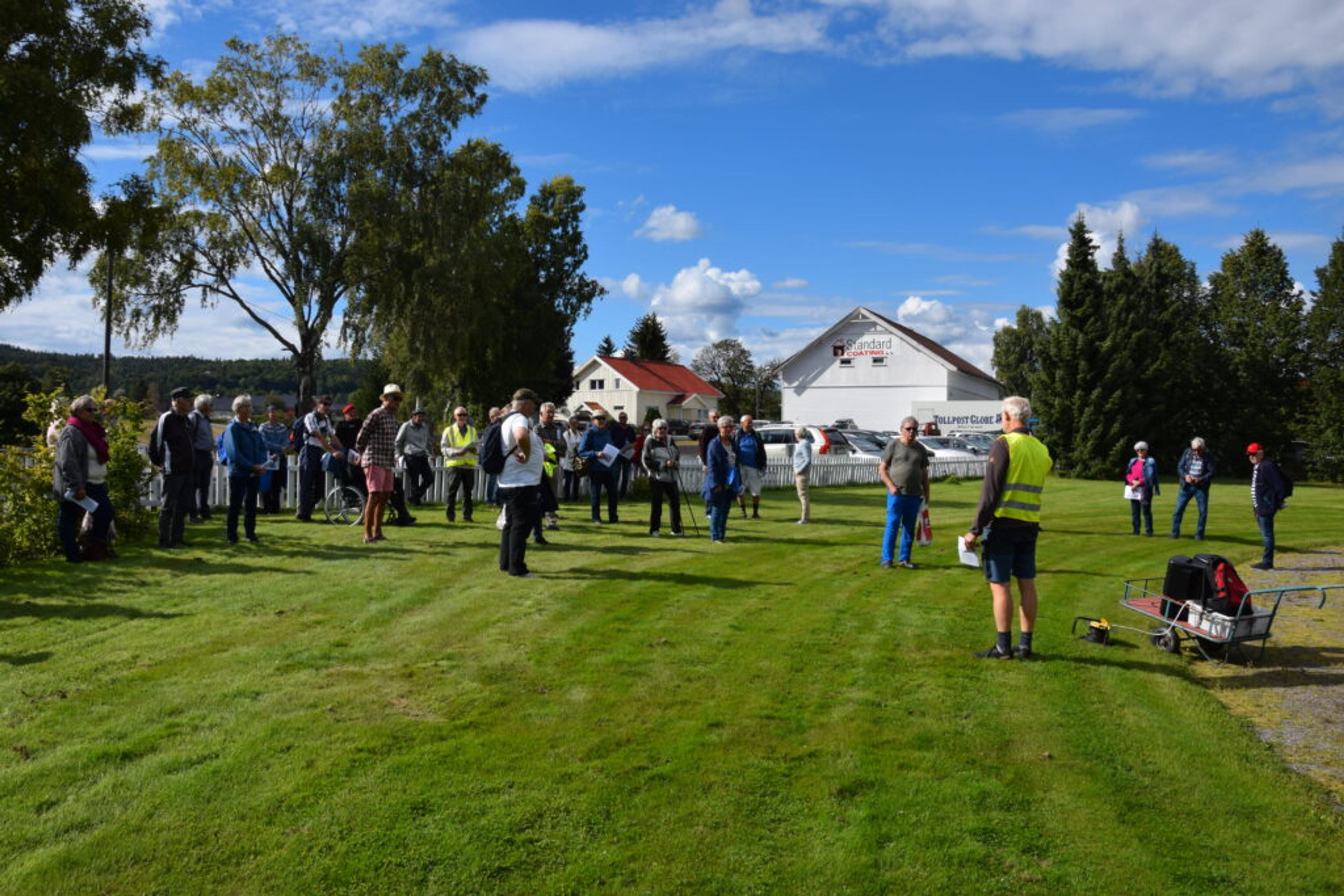 Kåre Holtung ønska velkommen og fikk hjelp av Per Bjerkø, Trygve Gran, Knut Høydal og Trygve Bøhle til å fortelle historiene som dukka opp i rikelig monn langs ruta.