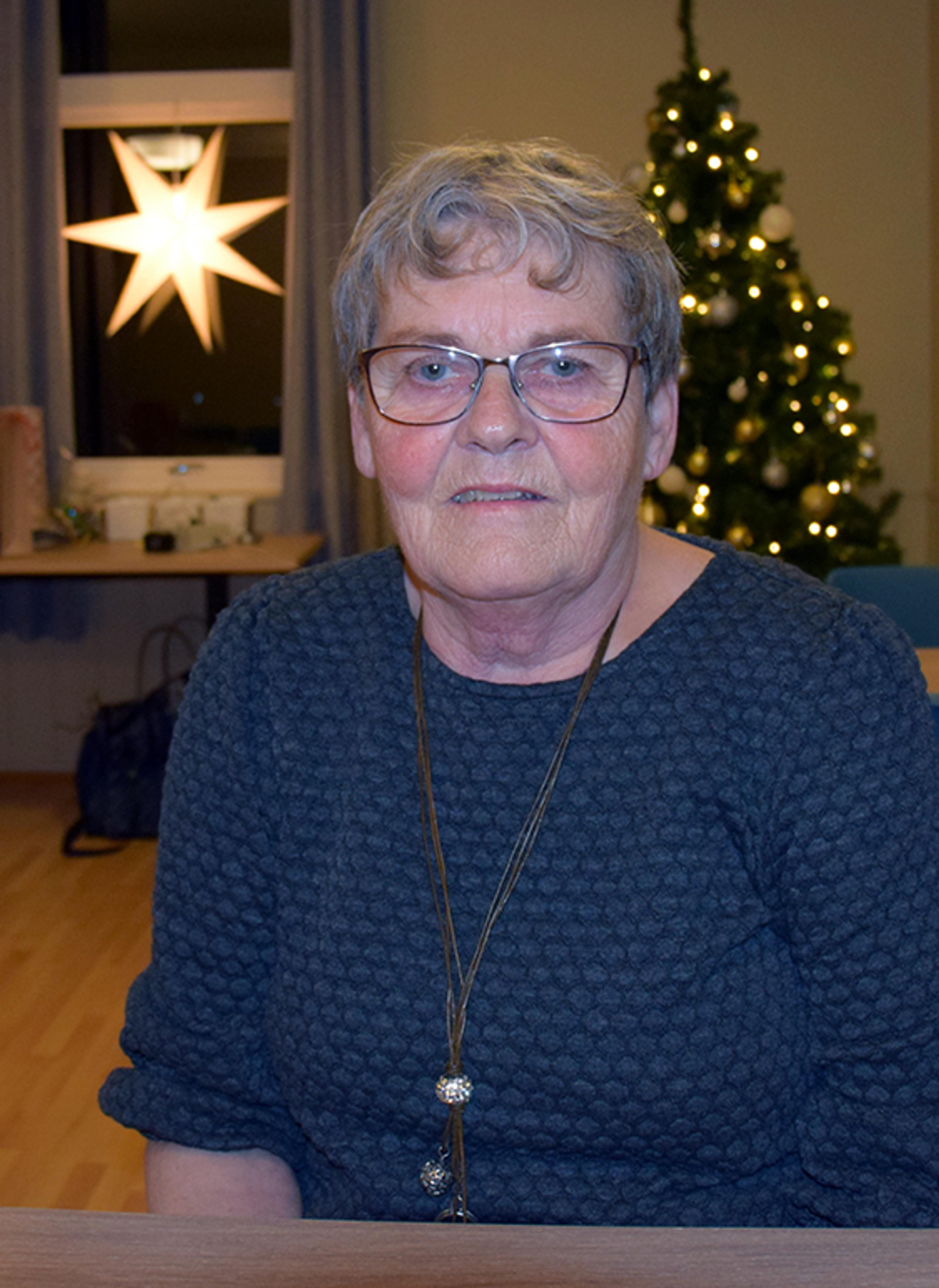 EN VIKTIG FØRJULSTRADISJON: Anne Lise Skaug er leder for de driftige damene i Hjerpetjønn sanitetsforening, som nok en gang inviterte til førjulshyggekveld på vellet. Foto: Håkon Westby, ReAvisa.