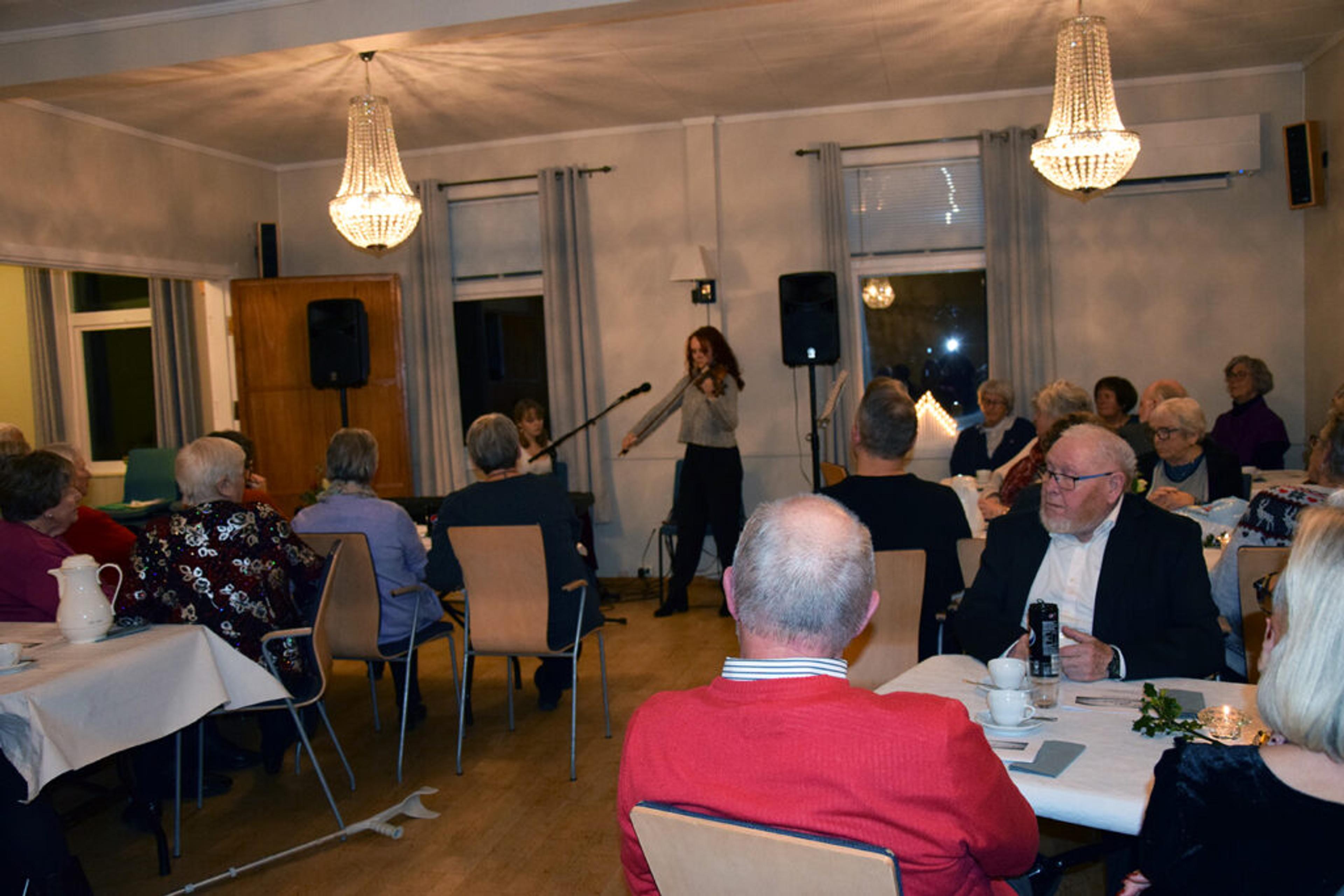 På programmet sto snitter fra Meny og hjemmebakte kaker. Underholdning sto to av Frank Weddes elever, Aurora Jonassen og Brynja Søyland for, med flott spill på fiolin og keyboard og sang.
