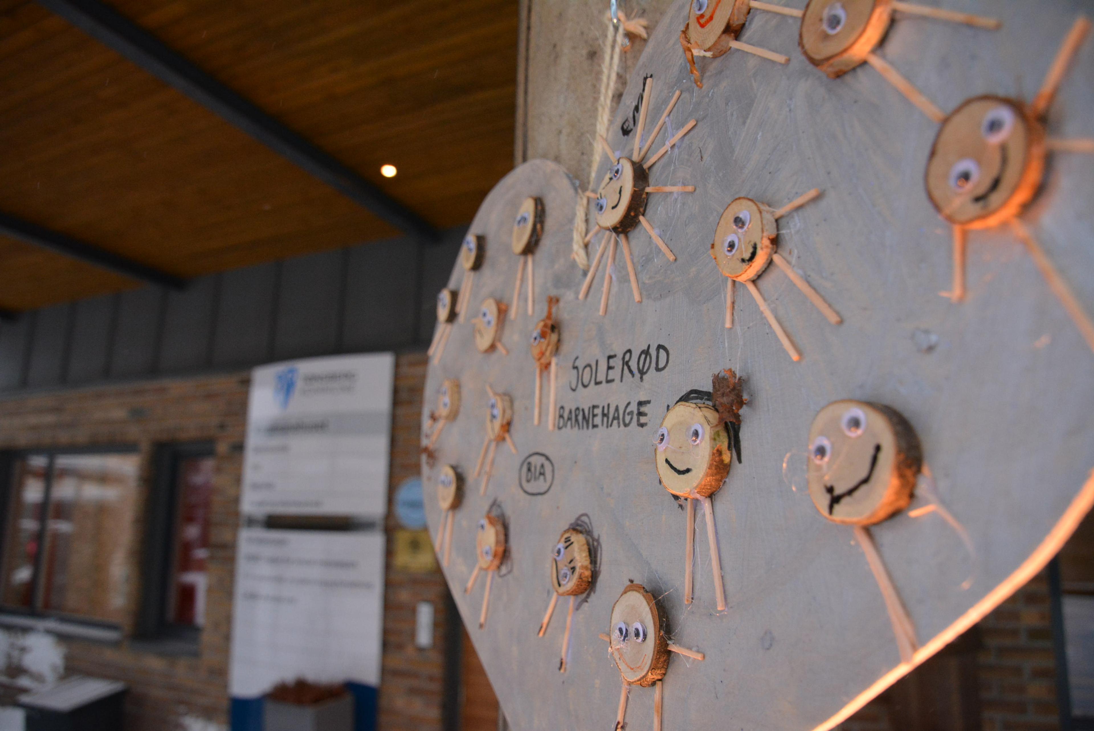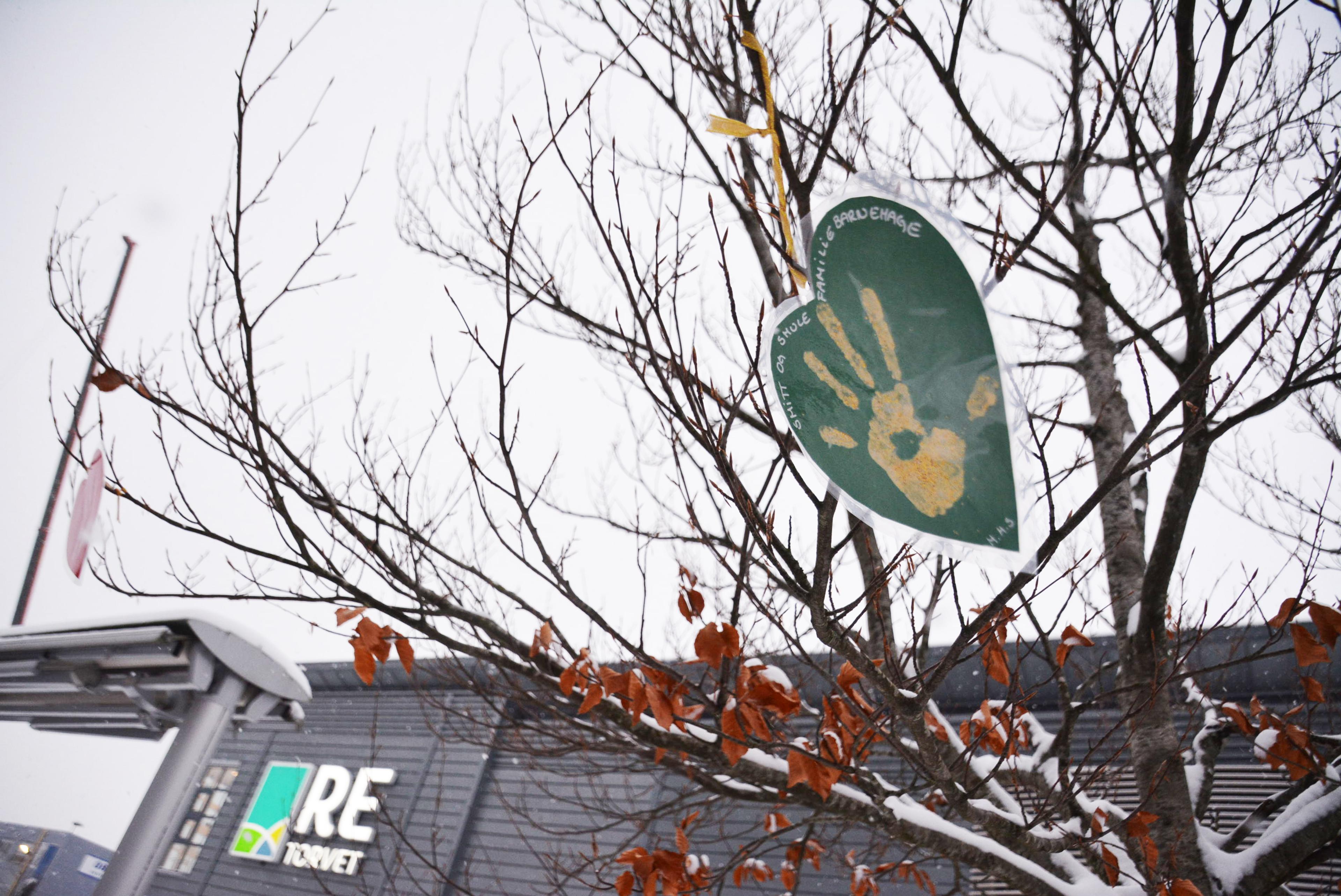 Et titalls barnehager i Re står for julepynten i hjerteform, og så får en barnehage ansvar for å henge den opp til slutt.