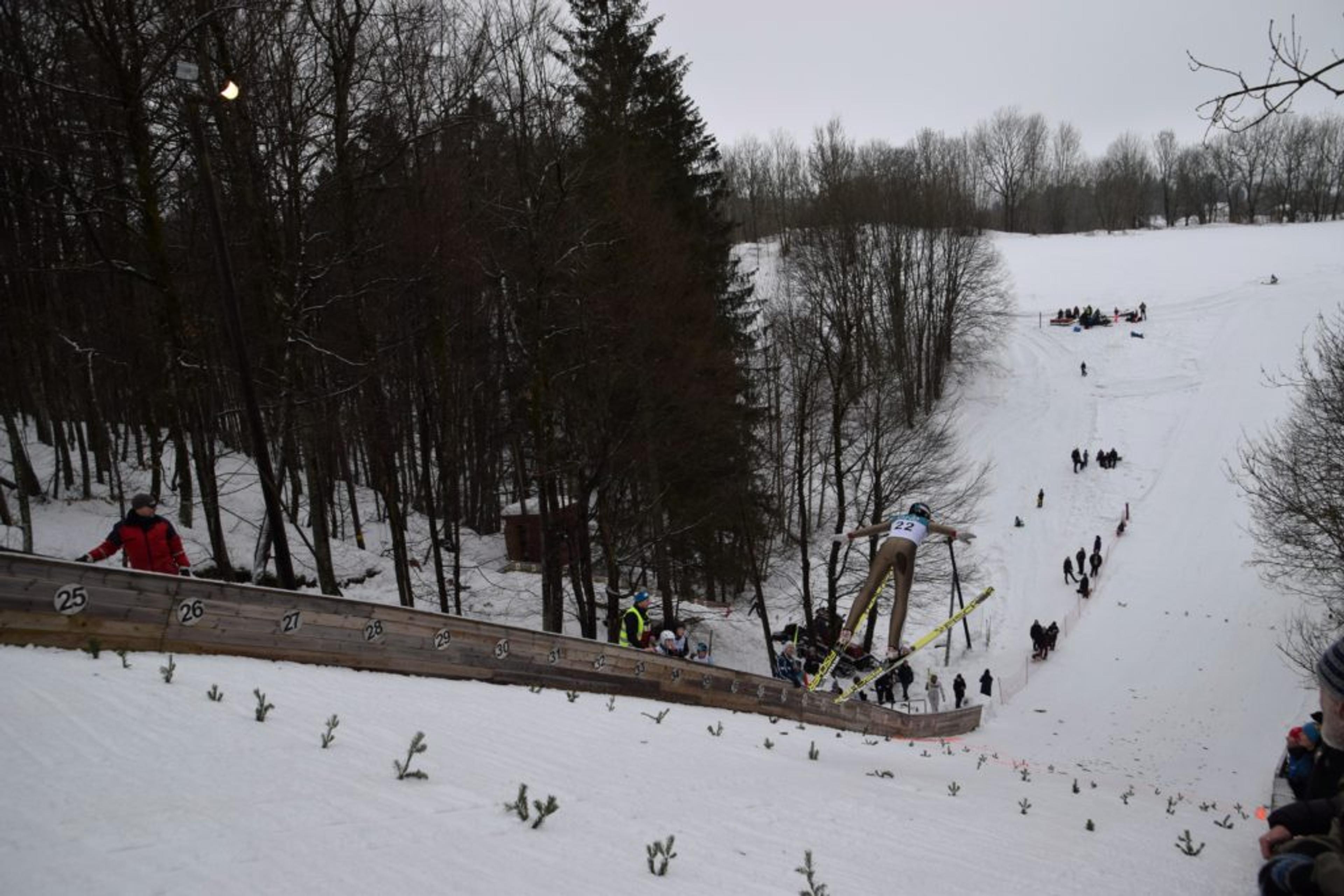 Henrik heier på fetteren sin, Isak Brenno, som også er fra Nøtterøy og hopper for IL Ivrig. Og når de to er ferdig i den lille og mellomste bakken, heier de på Even Ringen Kommedal (14) fra Kleiva i 15-årsklassen. Han har tatt steget opp i den store bakken, K44.