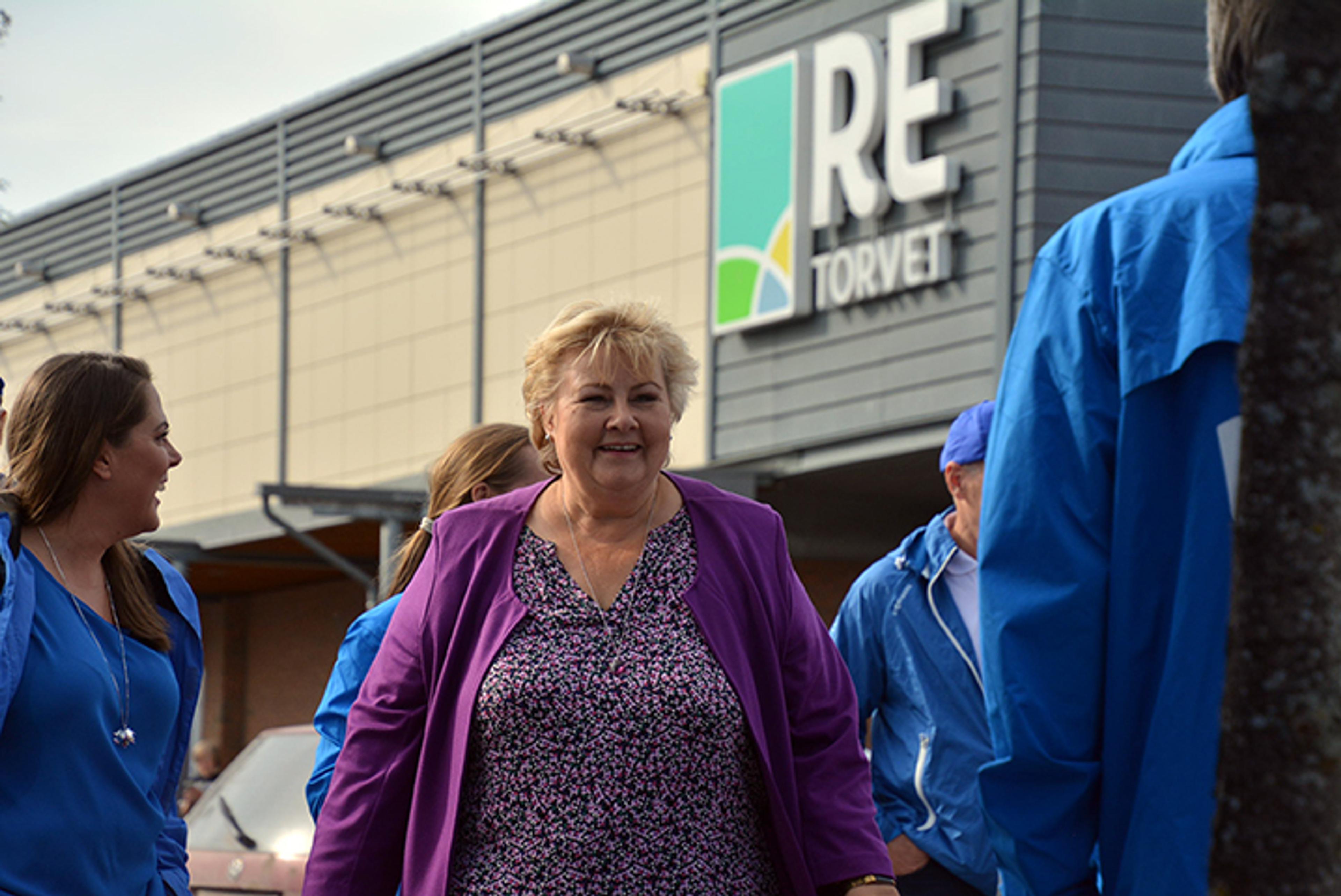 Erna har også besøkt Re-torvet på sin valgkamp-turne, seinest for to år siden foran stortingsvalget – der Høyre tapte makta etter åtte år i regjering.