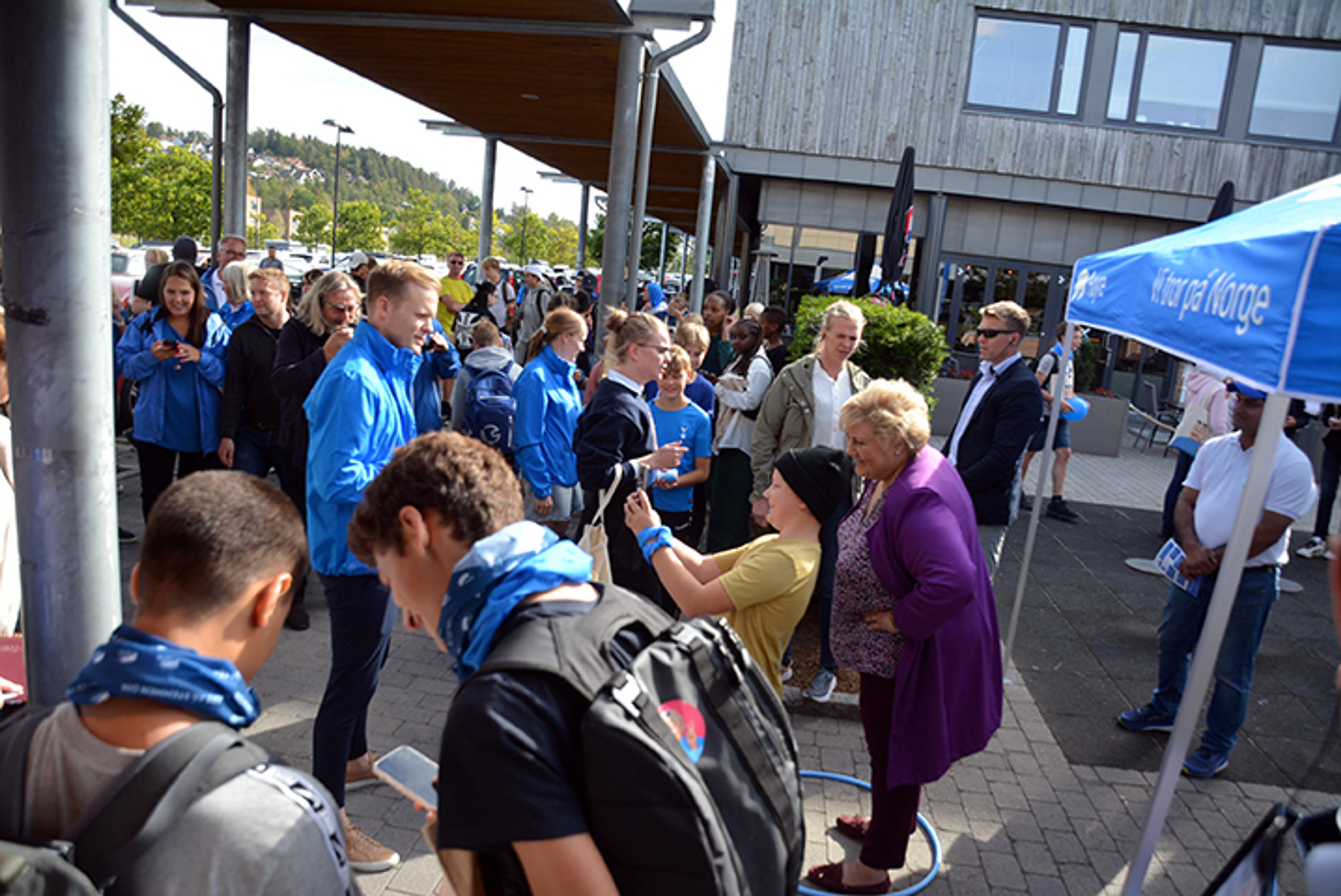 ERNA VAR STJERNA: Få partiledere har vel besøkt Re oftere, enn Høyre-leder Erna Solberg. Her fra da valgkampbussen til Høyre kom innom Revetal før stortingsvalget for to år siden. Arkivfoto: Stian Ormestad, ReAvisa.