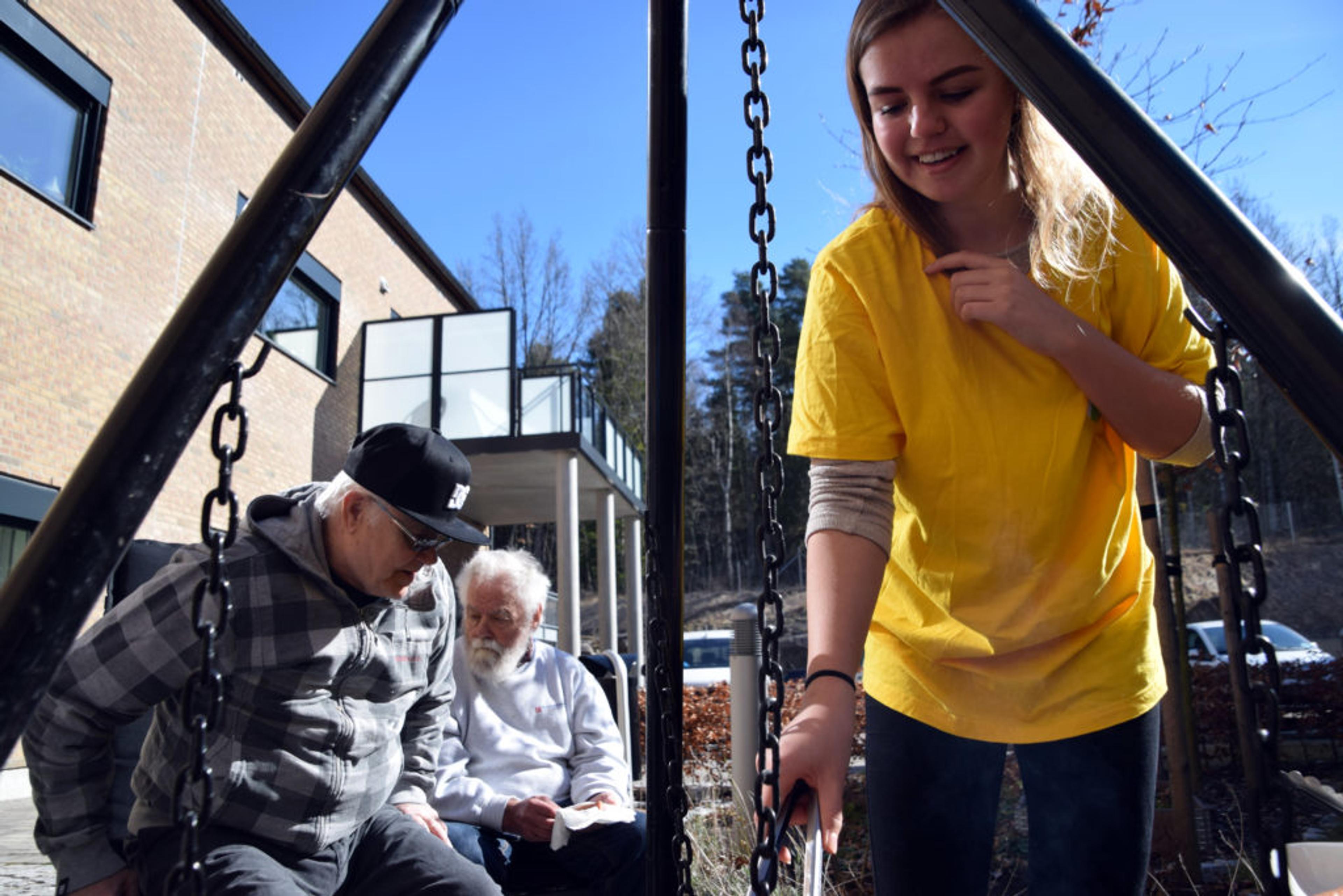 Re VGS-elever lærer faget i praksis på Re helsehus, og helsehuset får fantastisk god hjelp. Det setter beboerne stor pris på, har ReAvisa referert. Foto: Stian Ormestad, ReAvisa.