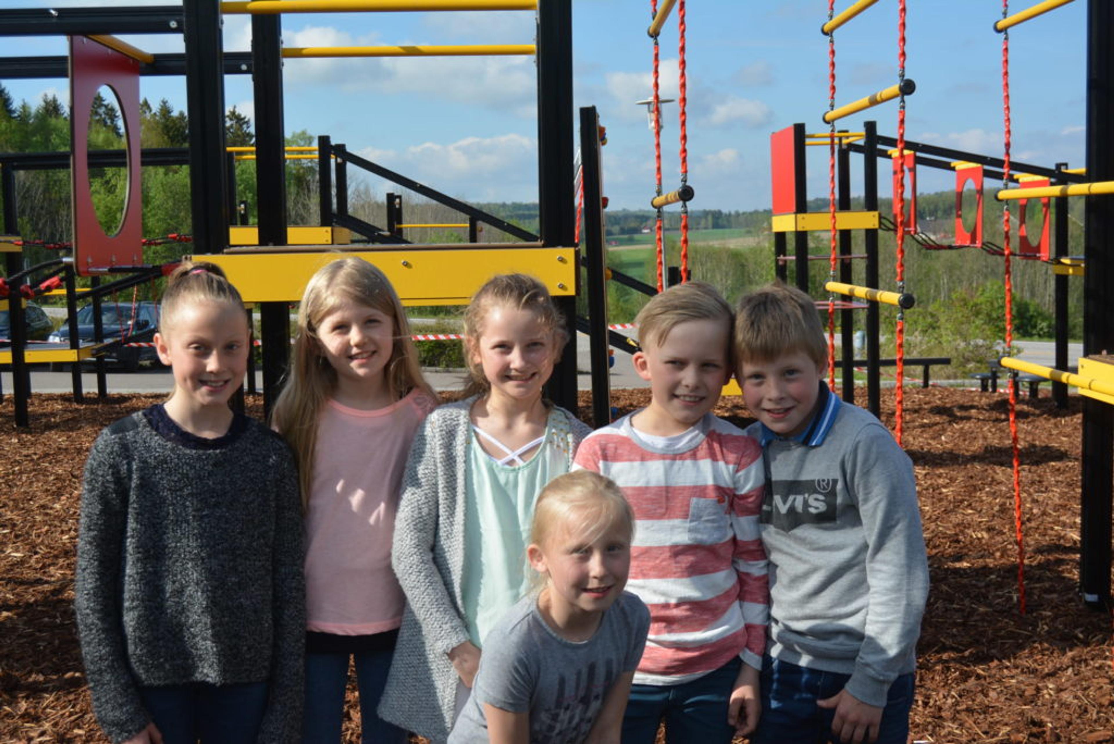 Mina Lie (10), Christina Holm (10), Madelen Mørken (10), Daniel Mørken (10), Mathias Hvaal Fjellberg (10) og Madelen Krystad (10) er noen av en hel haug med barn som gleder seg veldig til åpningen av hinderløypa: