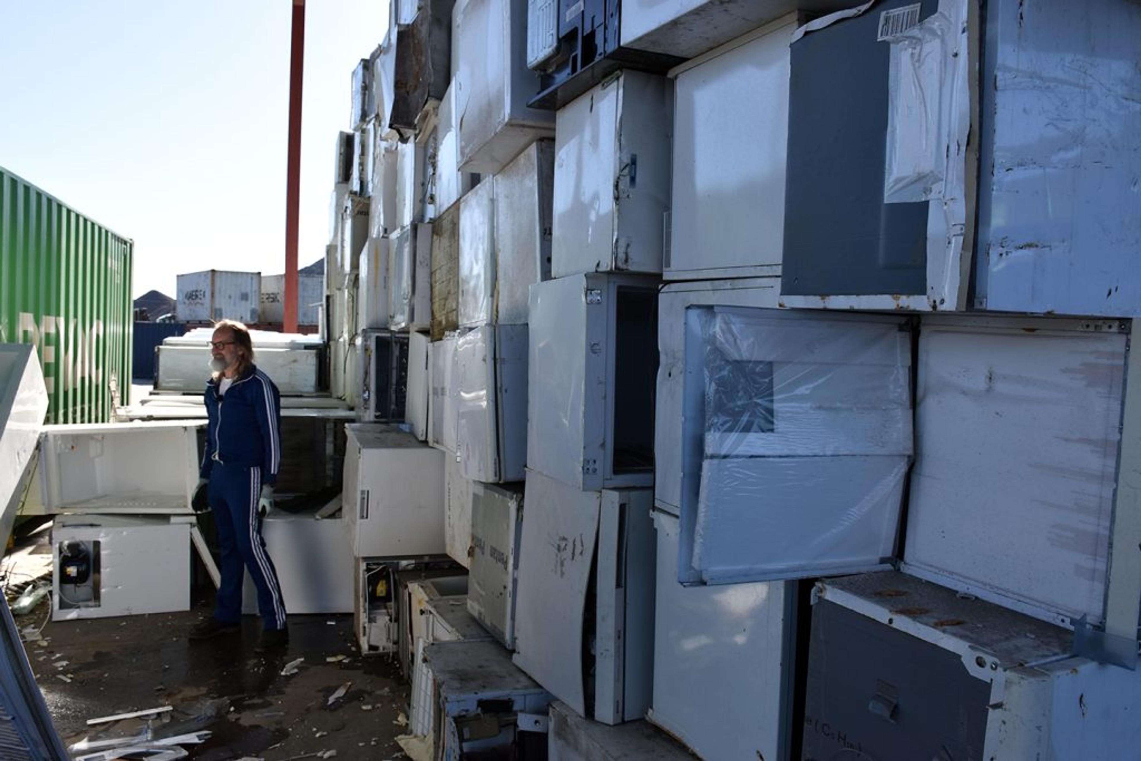 PÅ FARTA: Thomas Stange organiserer og leiter fram duganes hvitevarer sammen med Hurra Torpedo-gutta. Foto: Stian Ormestad. ReAvisa.