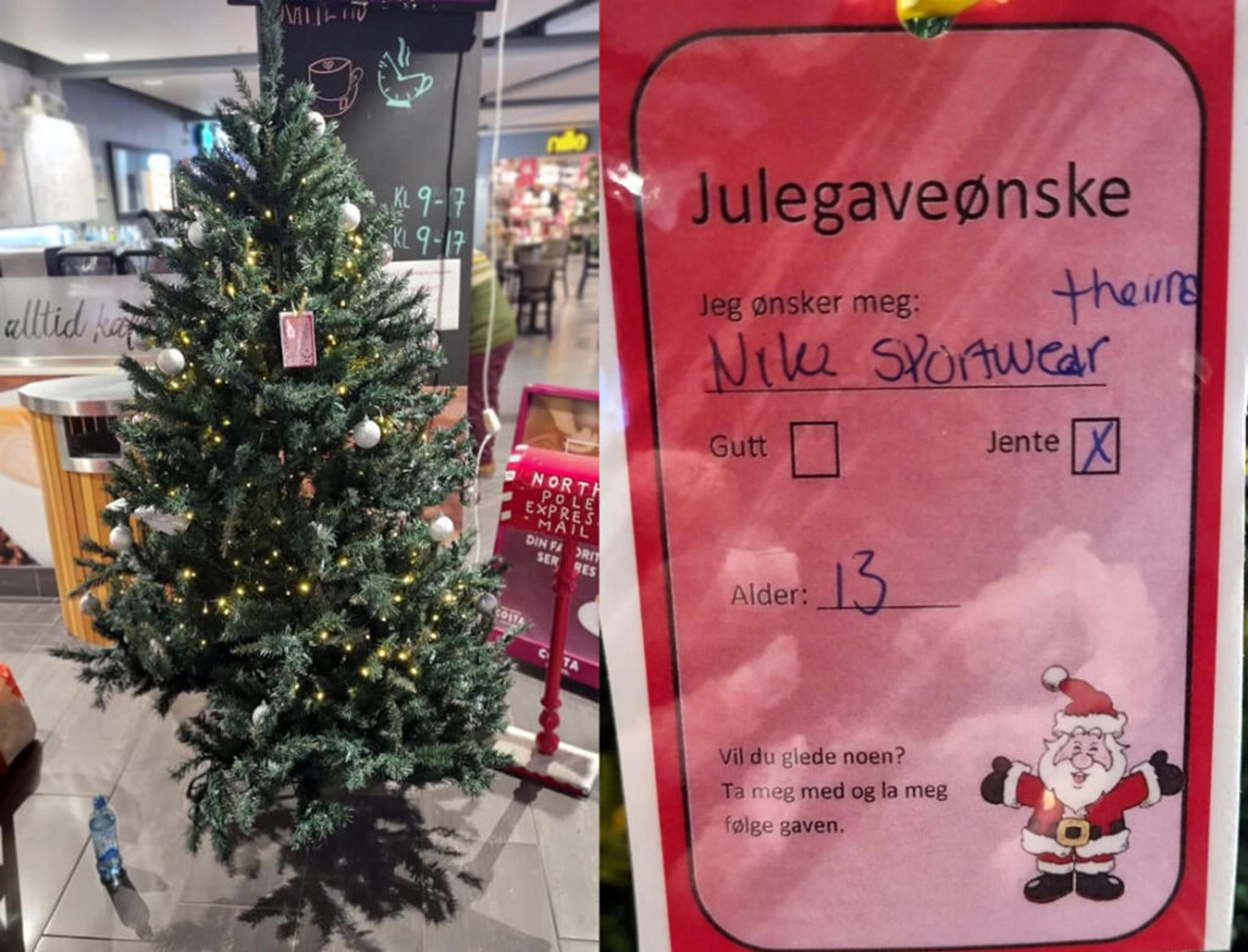EN ENESTE JULEGAVEØNSKELAPP IGJEN: Du finner juletreet i 2. etasje på Re-torvet, tradisjonen tro. Foto: Privat.