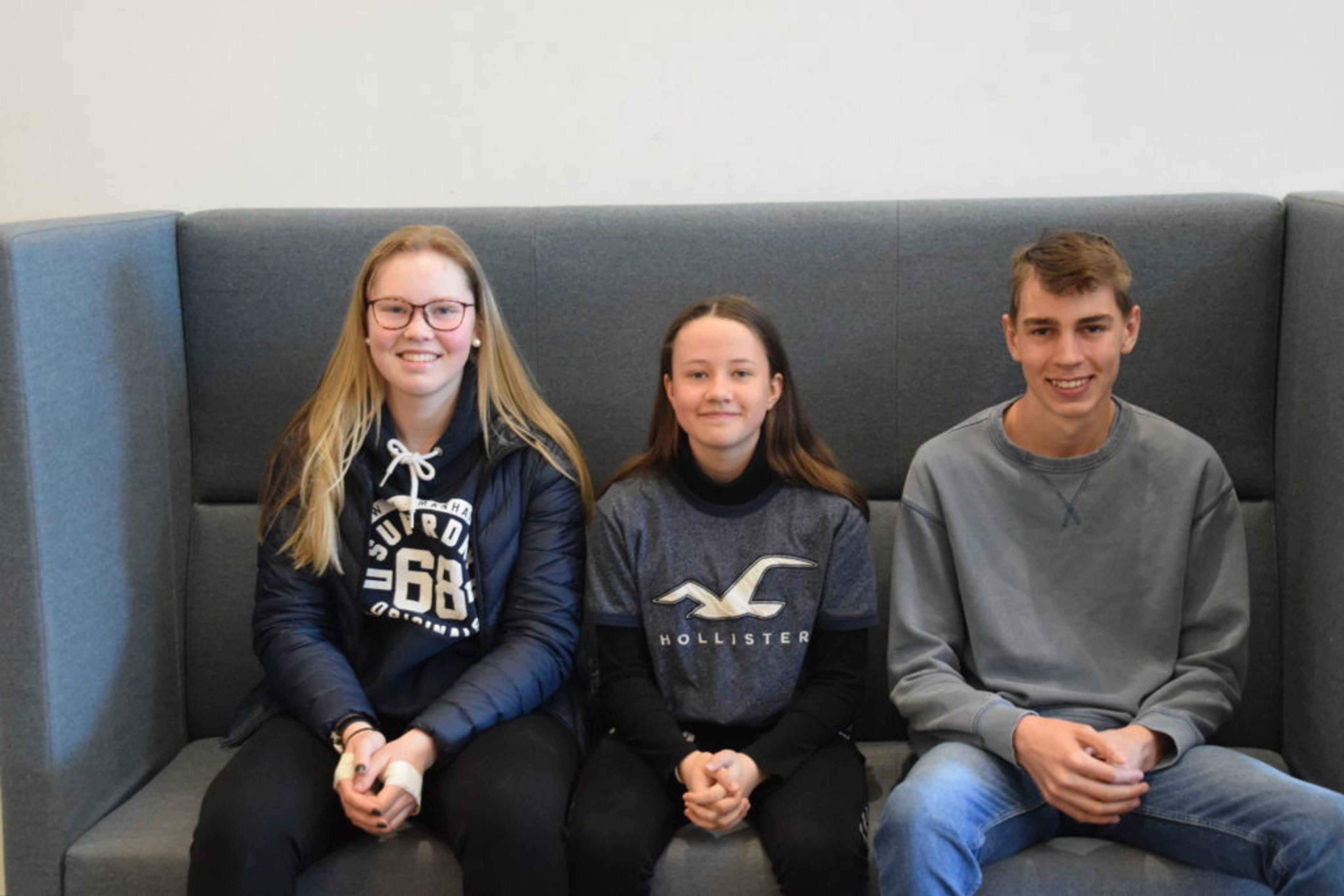 UNGDOMSSKOLE-ELEVER: Marie Jacobsen, Christianne Mender og Herman Bøhle går i 8. klasse på Revetal ungomsskole. Foto: Lovis Eggum Wallberg.
