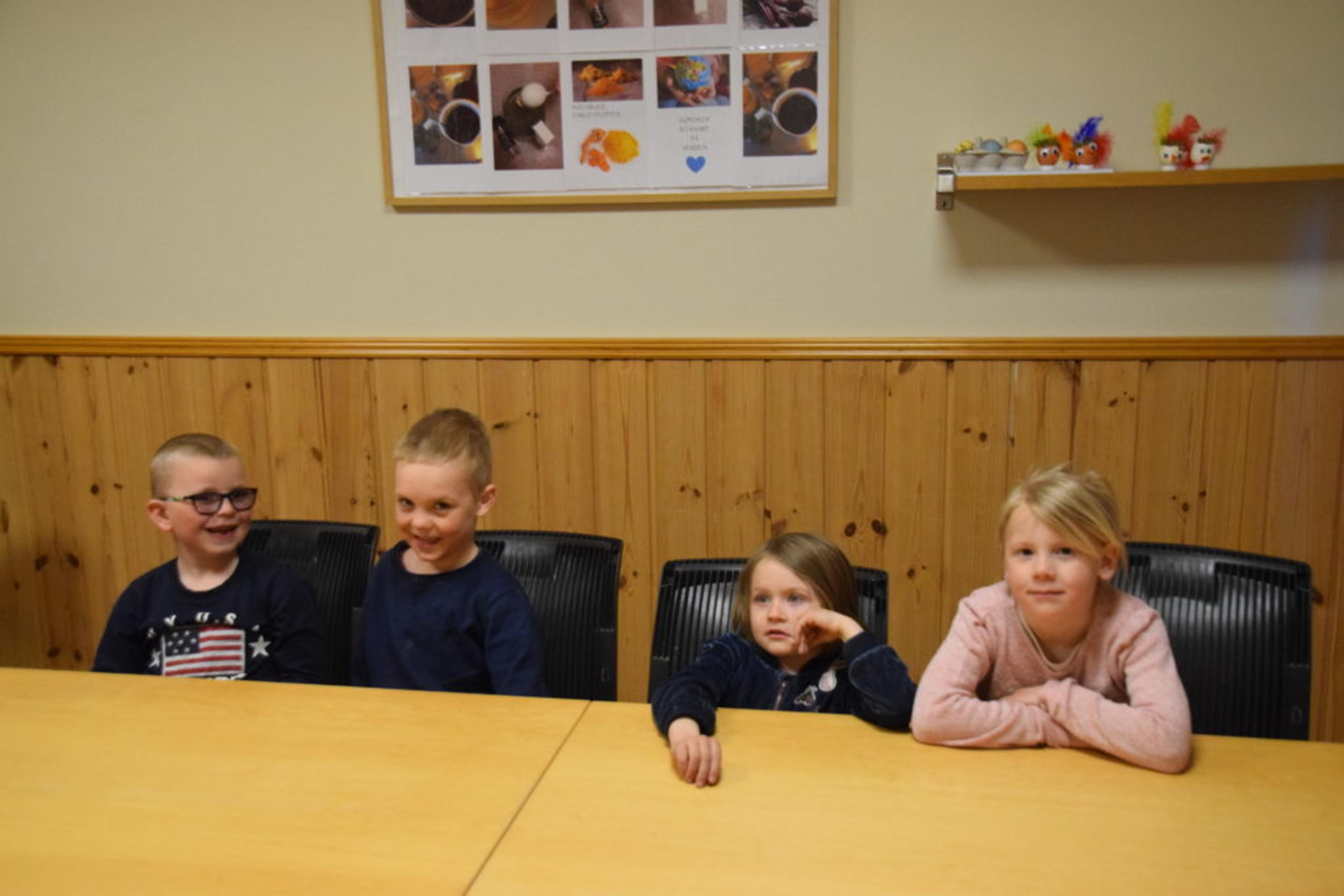 BARNEHAGEBARN: Aleksandra Seppola, Aleksandra Carlson, Elias Vestergaard Hvam og Mathias Bjørnstad går i Revetal barnehage. Foto: Lykke Amelie Amundsen.