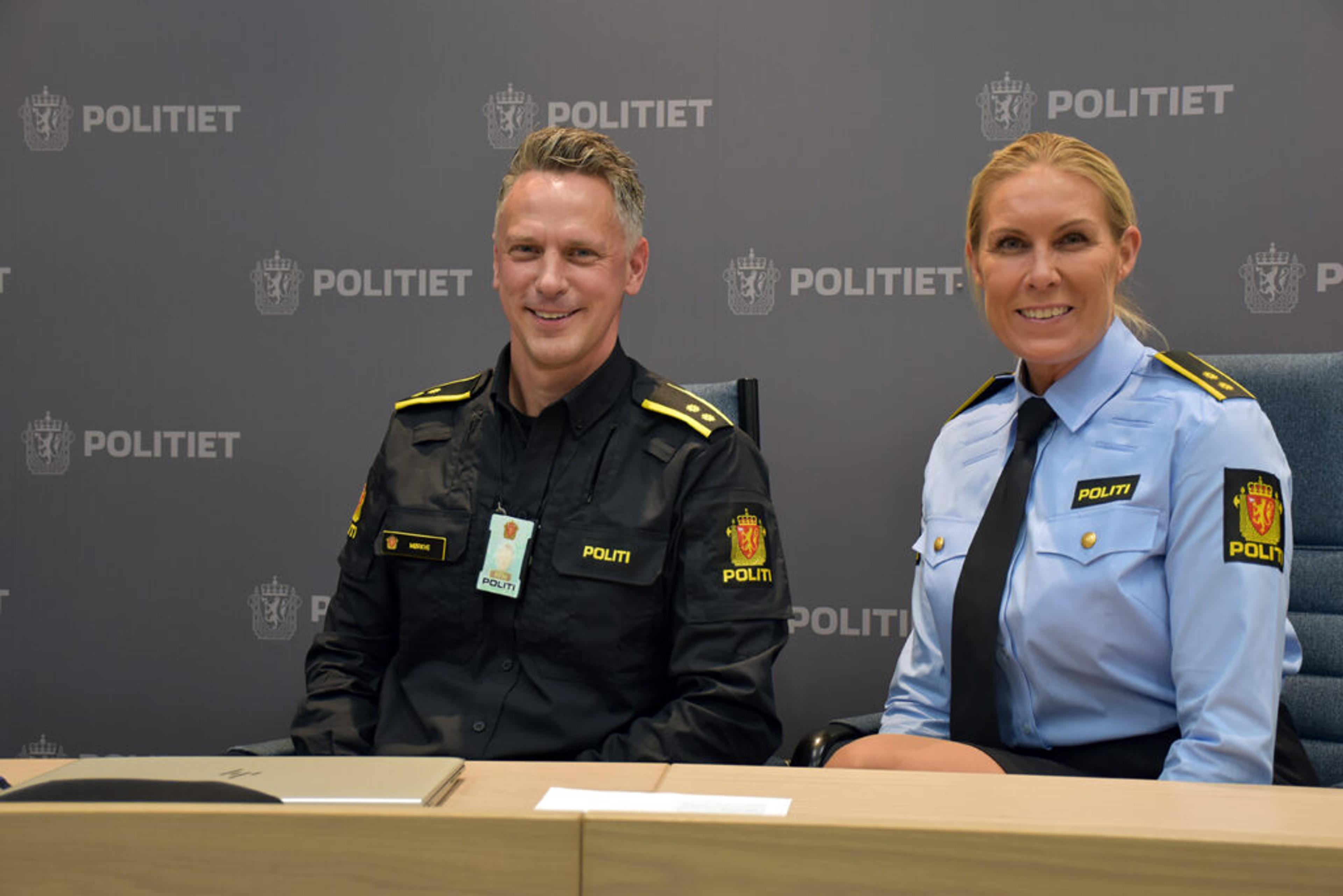 NYTT POLITI-PROSJEKT: Patruljesjef ved Tønsberg politistasjon Andreas Mørkve og prosjektleder for nærpolitiet i Tønsberg Linda Berg har rulla ut nærpolitiet som har Re som ett av sine prioriterte områder. Foto: Stian Ormestad, ReAvisa.