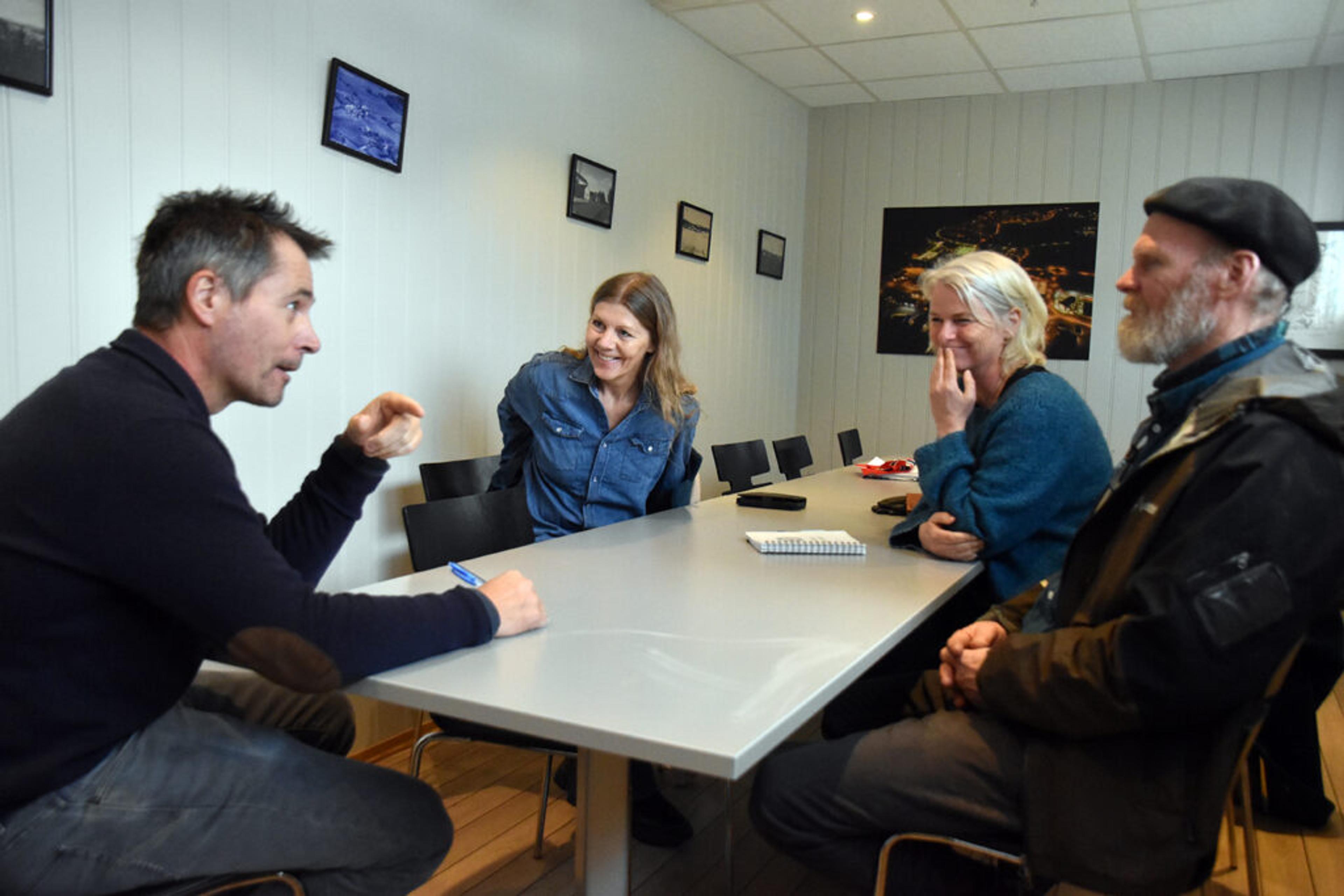 HASTEMØTE: Martin Gran liker ideen om et frivillighetens hus på Revetal. Derfor vil han gjerne kjøpe Låhnehuset av kommunen for prisforlangende – hvis Tønsberg kommune godtar budet hans. Martin Gran, Revetal invest, hadde et møte med Rikka Rivrud, Ingunn Henriksen Leeber og Roar Lefsaker fra NaKuHel Vestfold lørdag etter visning. Foto: Stian Ormestad, ReAvisa.