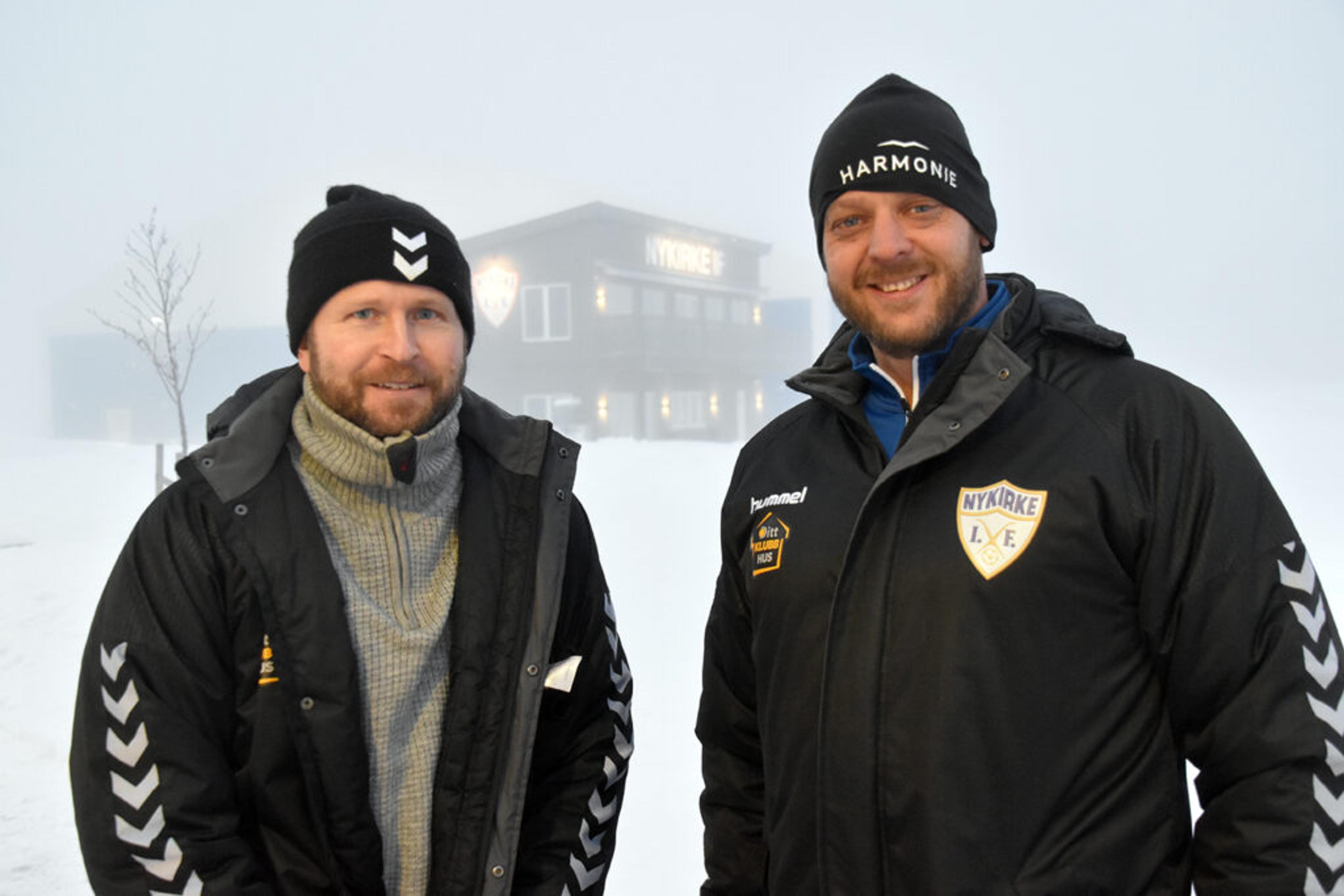 HJELPER HVERANDRE: Ivrig-trener Thor Fredrik og Nykirke-trener Marius er veldig fornøyd for at fotballklubbene kan hjelpe hverandre på tvers av kommunegrensene. Foto: Stian Ormestad, ReAvisa.