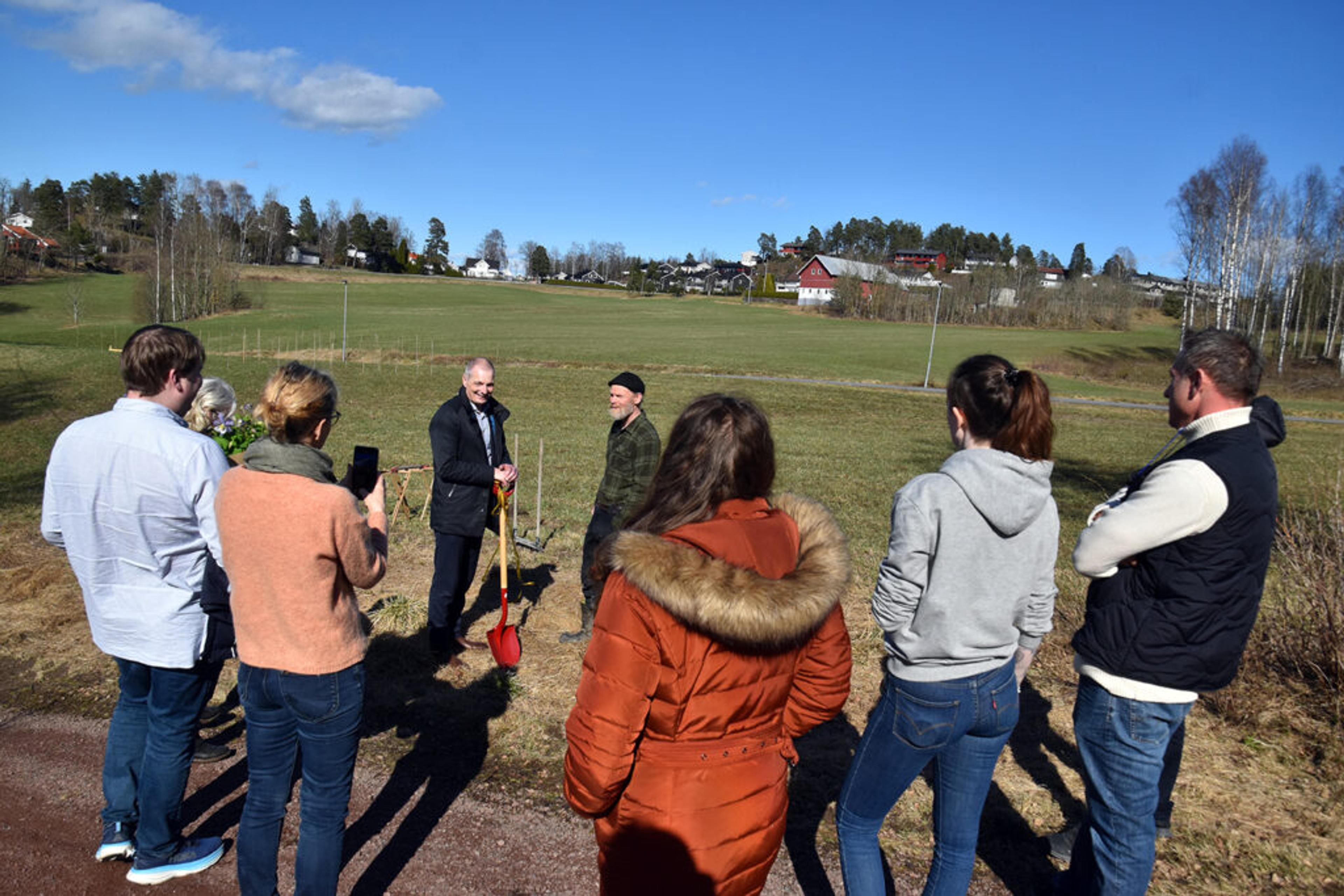 FØRSTE SPADETAK: Etter heftig helgejobbing blant administrasjon og folkevalgte i Tønsberg kommune, ble det på et ekstraordinært formannskapsmøte bestemt at budet fra Revetal invest aksepteres – på en del vilkår. Men resultatet er at frivilligheten i Re nå har både hage og hus, midt på Revetal. Foto: Stian Ormestad, ReAvisa.