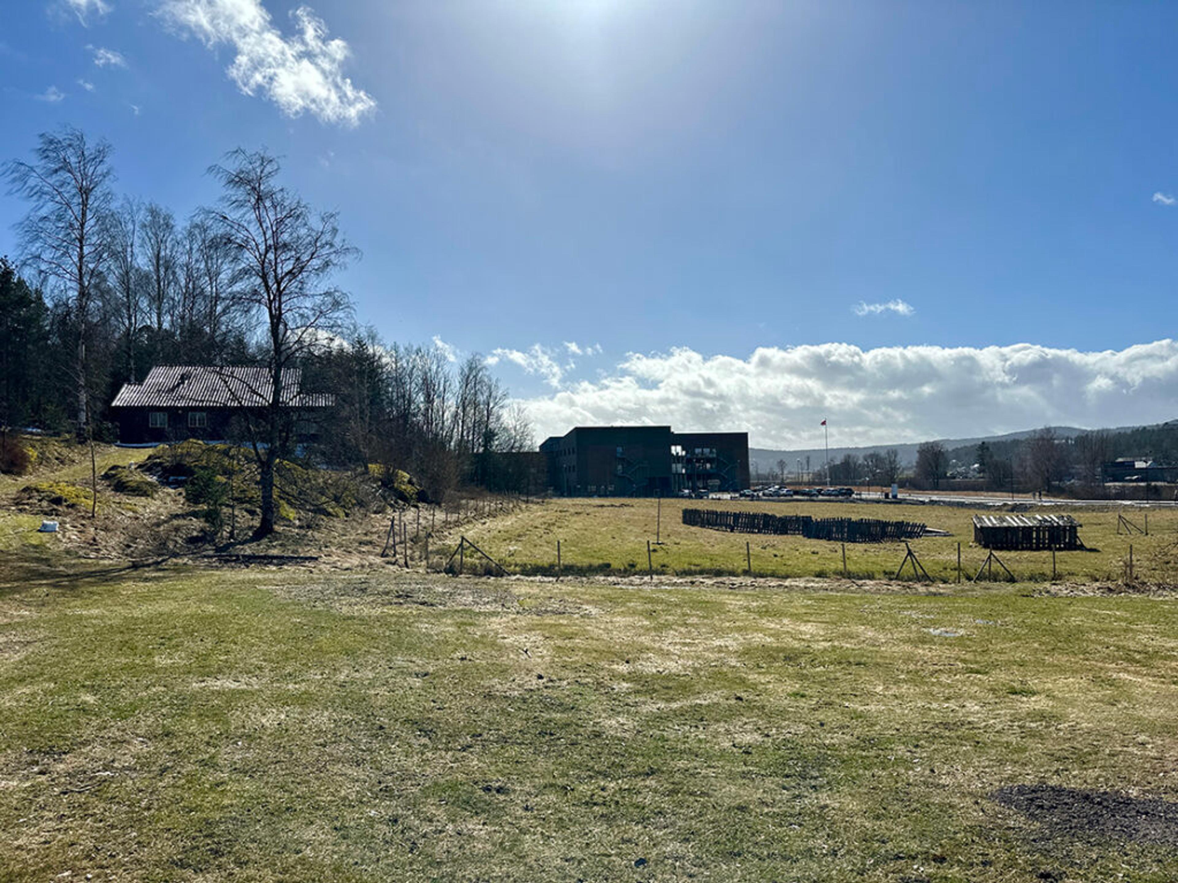 PERFEKT SAMLINGSPLASS: Huset ligger oppå pønten, nord for Re helsehus, midt på Revetal. I planen for uteområdene blir det anlagt en sti helt opptil huset. På baksida er det gang- og sykkelvei mellom Revetal og Valleåsen, og det blir også åpna en fin sti gjennom skauen ved huset. Det er er det nå skilta med gjennomgang forbudt, det vil bli bytta ute med et Velkommen!-skilt. Foto: Bjørn Thomassen, Revetalhagen.