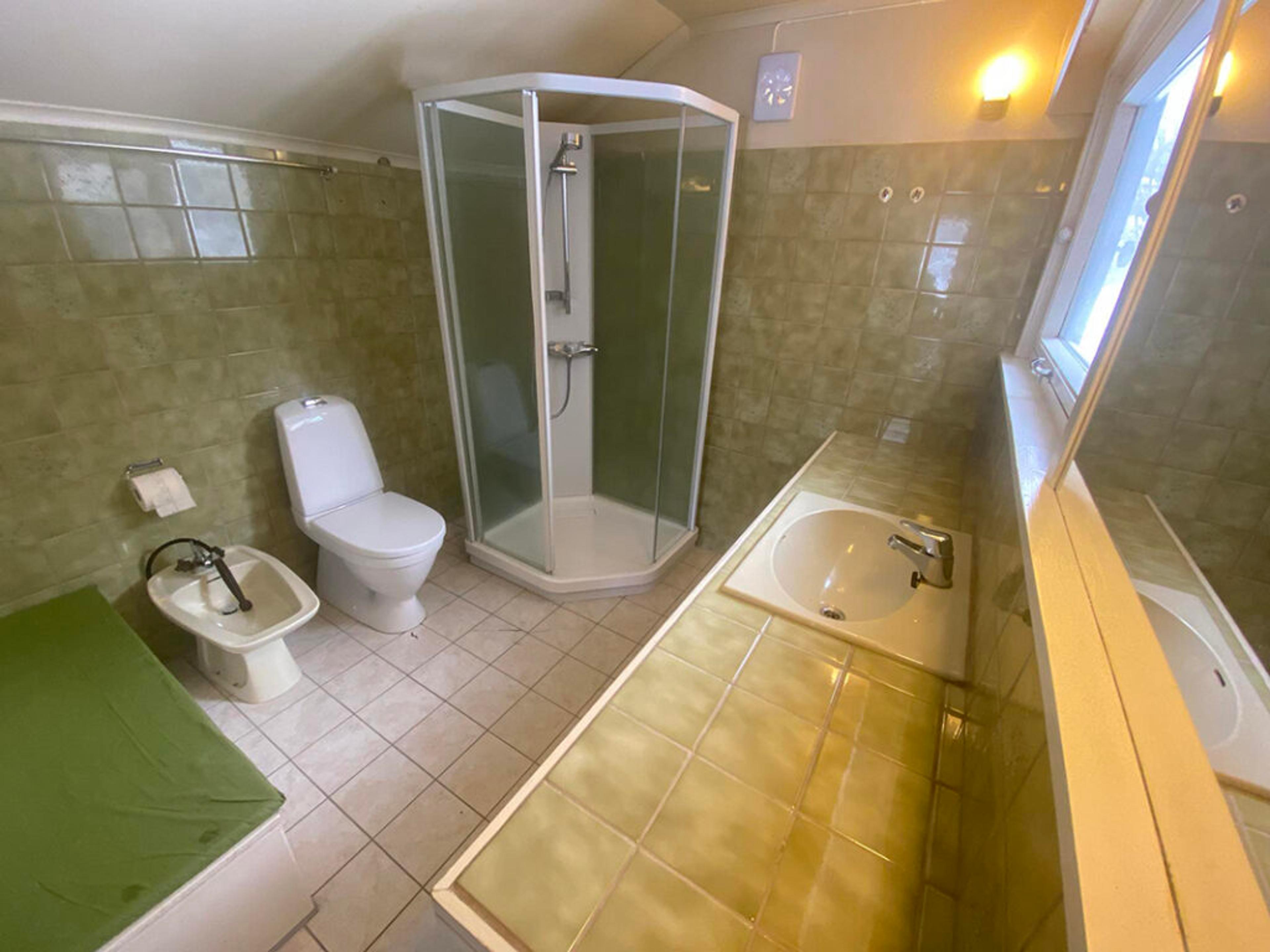GRØNT ER SKJØNT: Et ekte Re-bad i flere grader av grønt i Låhnehuset. Foto: Stian Ormestad, ReAvisa.