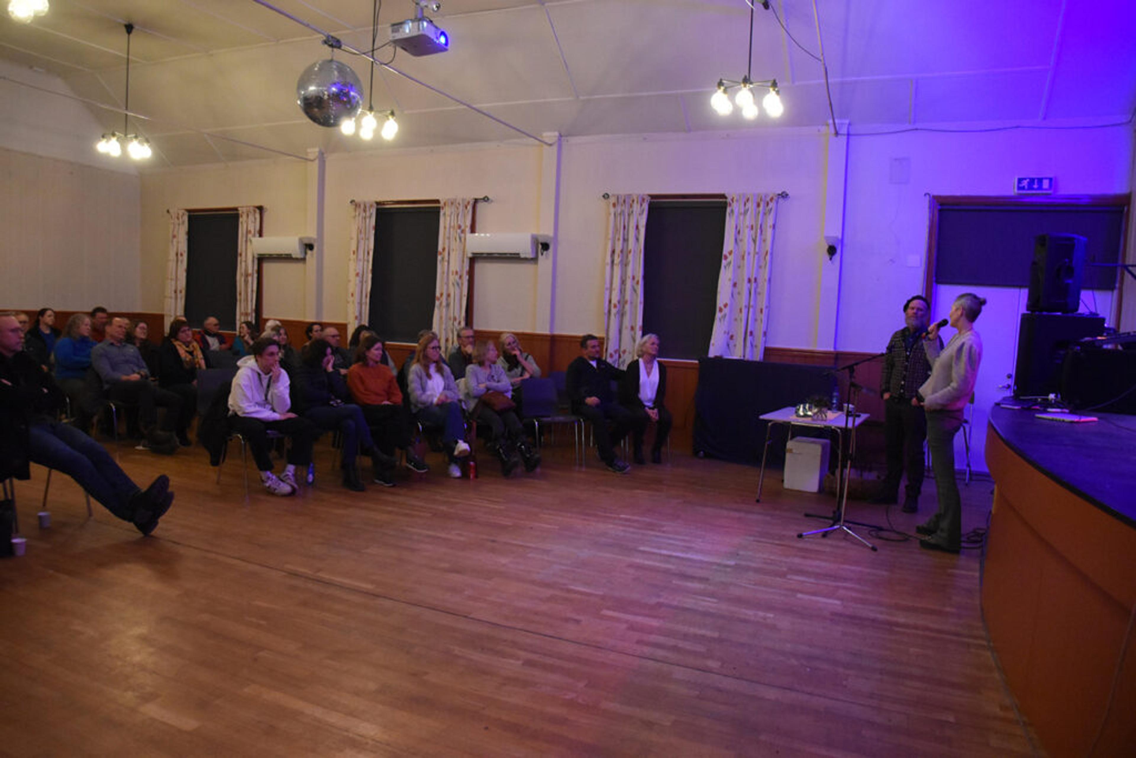 KICK-OFF: Over hundre interesserte kom for å høre om planene for Revetalhagen på kick-off på Elverhøy i mars. Interessen for denne grønne møteplassen i bygdebyen vår er stor i bygda vår. Foto: Stian Ormestad, ReAvisa.