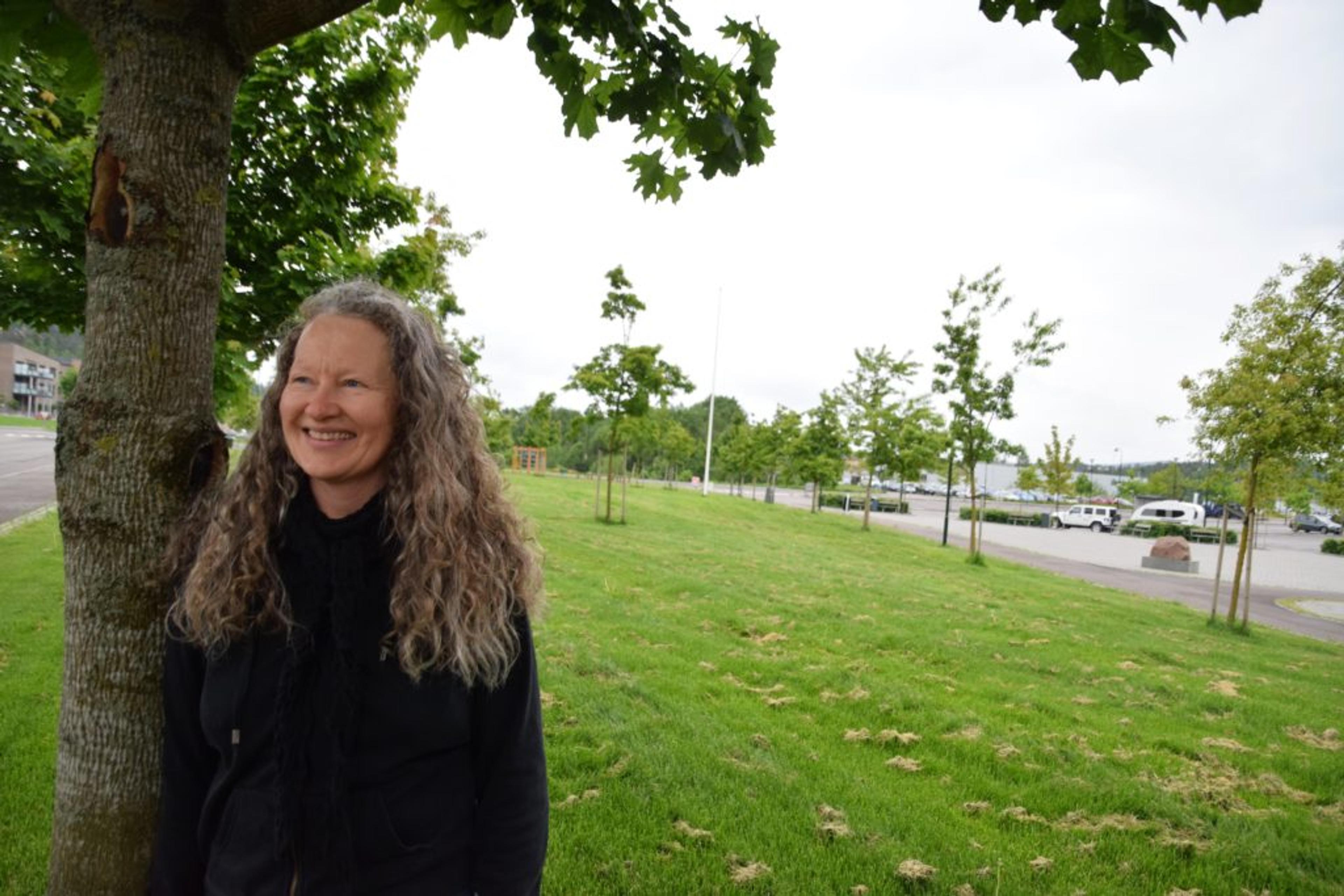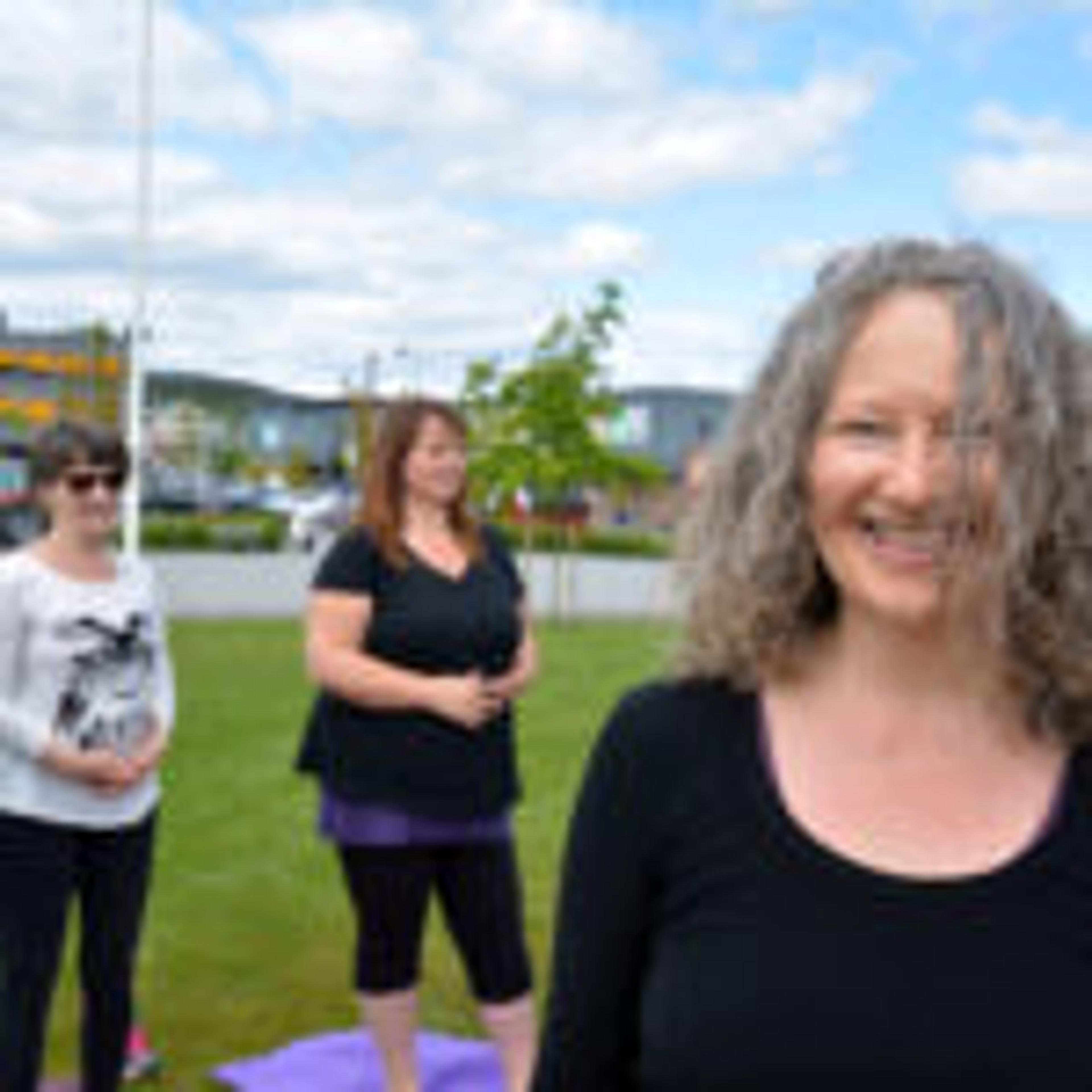 HELDIG MED VÆRET: Her, under det første året med feiring av den internasjonale yogadagen i Revetalparken, var Grete-Nina heldig med været. Foto: Stian Ormestad.