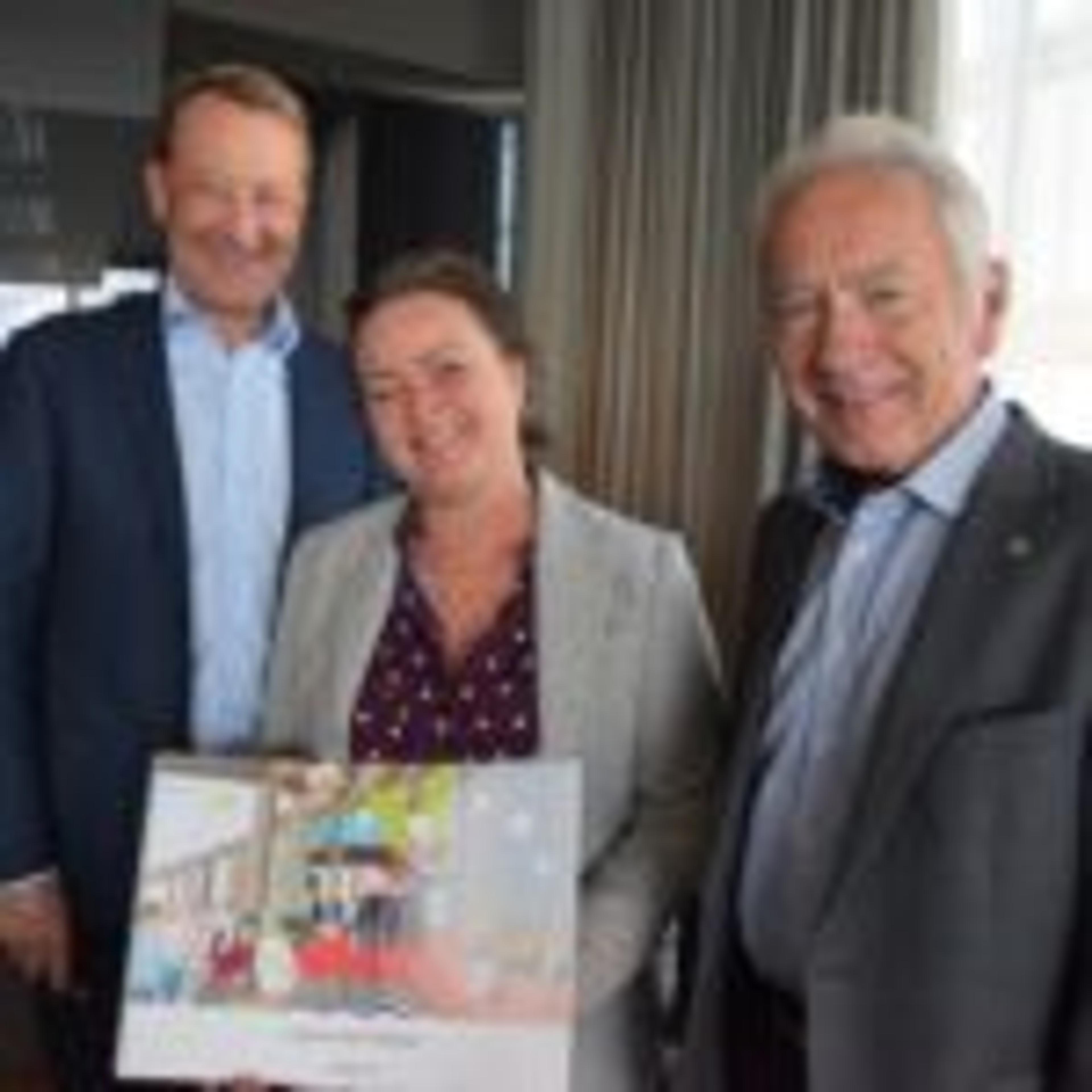 KLAPPET OG KLART: Det så lyst ut for nytt ungdomshus på Revetal, da Gjelsten ville bidra med ti millioner til byggingen. Her ved signering av avtalen på Aker brygge, sammen med kultursjef Ida Johre og Re-ordfører Thorvald Hillestad (SP). Arkivfoto: Stian Ormestad.