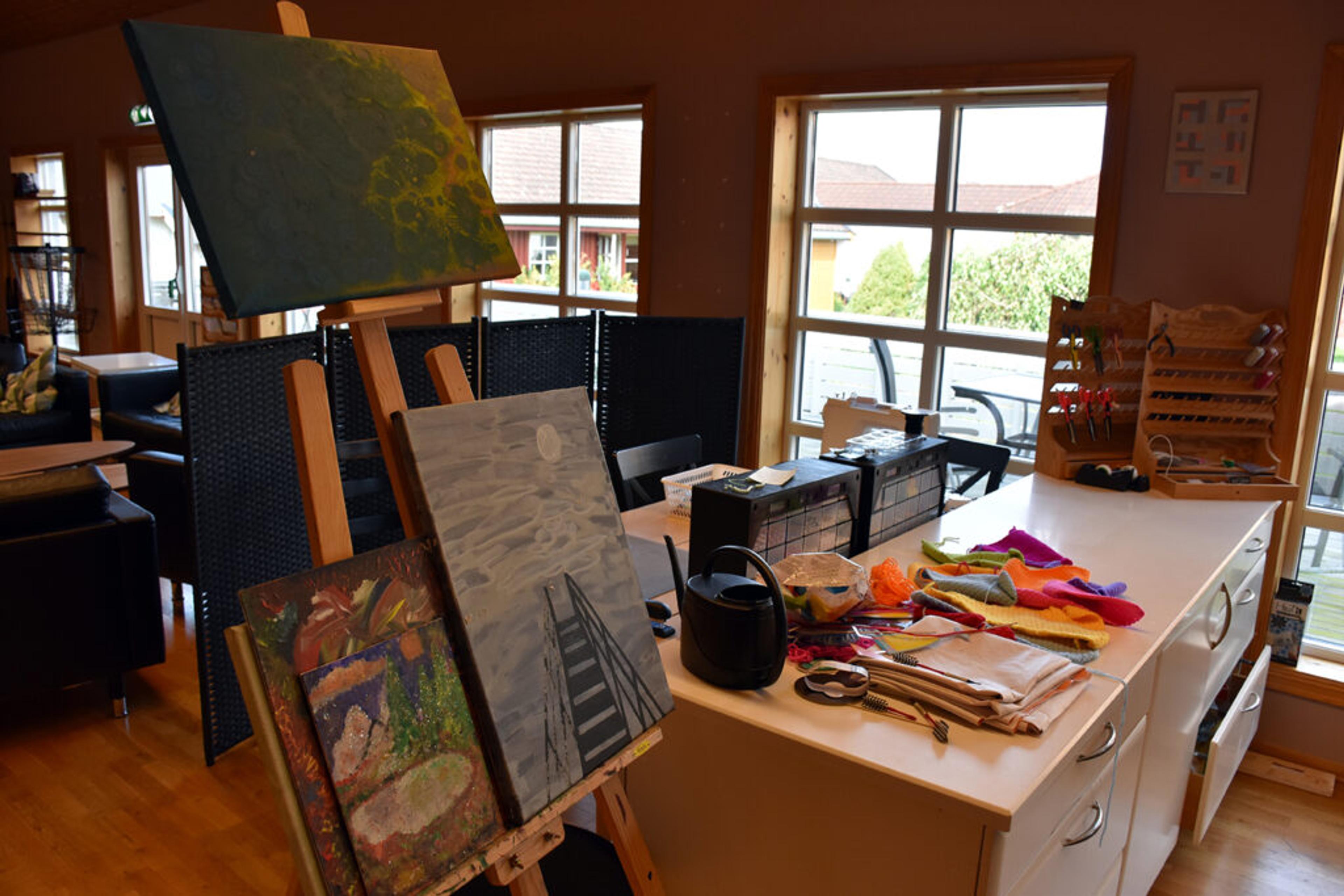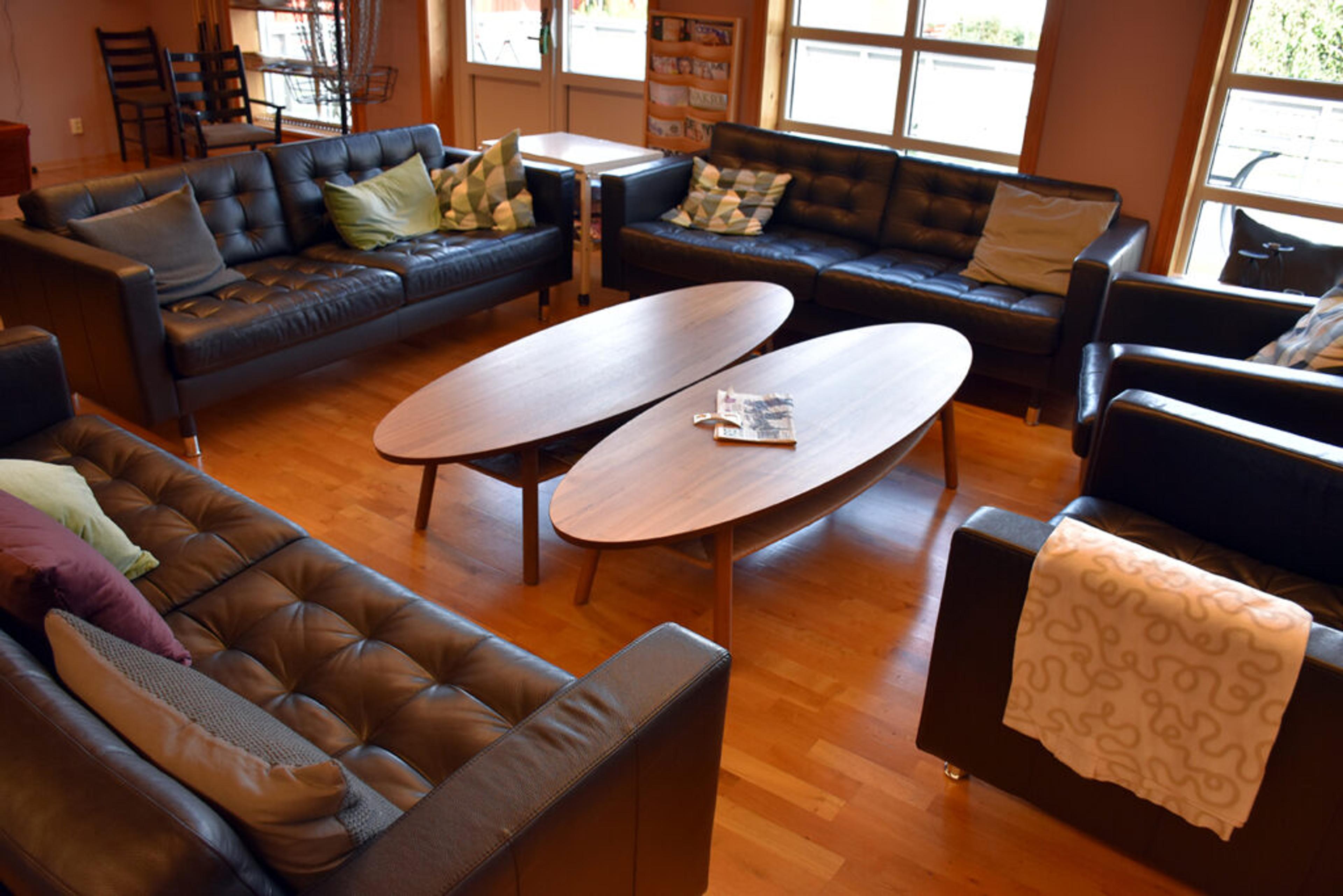SOSIALT: Her kan man slå seg ned og ta en kaffikopp og en prat. Re-daktøren liker spesielt godt at det ligger ei veldig godt lest ReAvisa på bordet, krøllete og velbrukt. Foto: Stian Ormestad, ReAvisa.