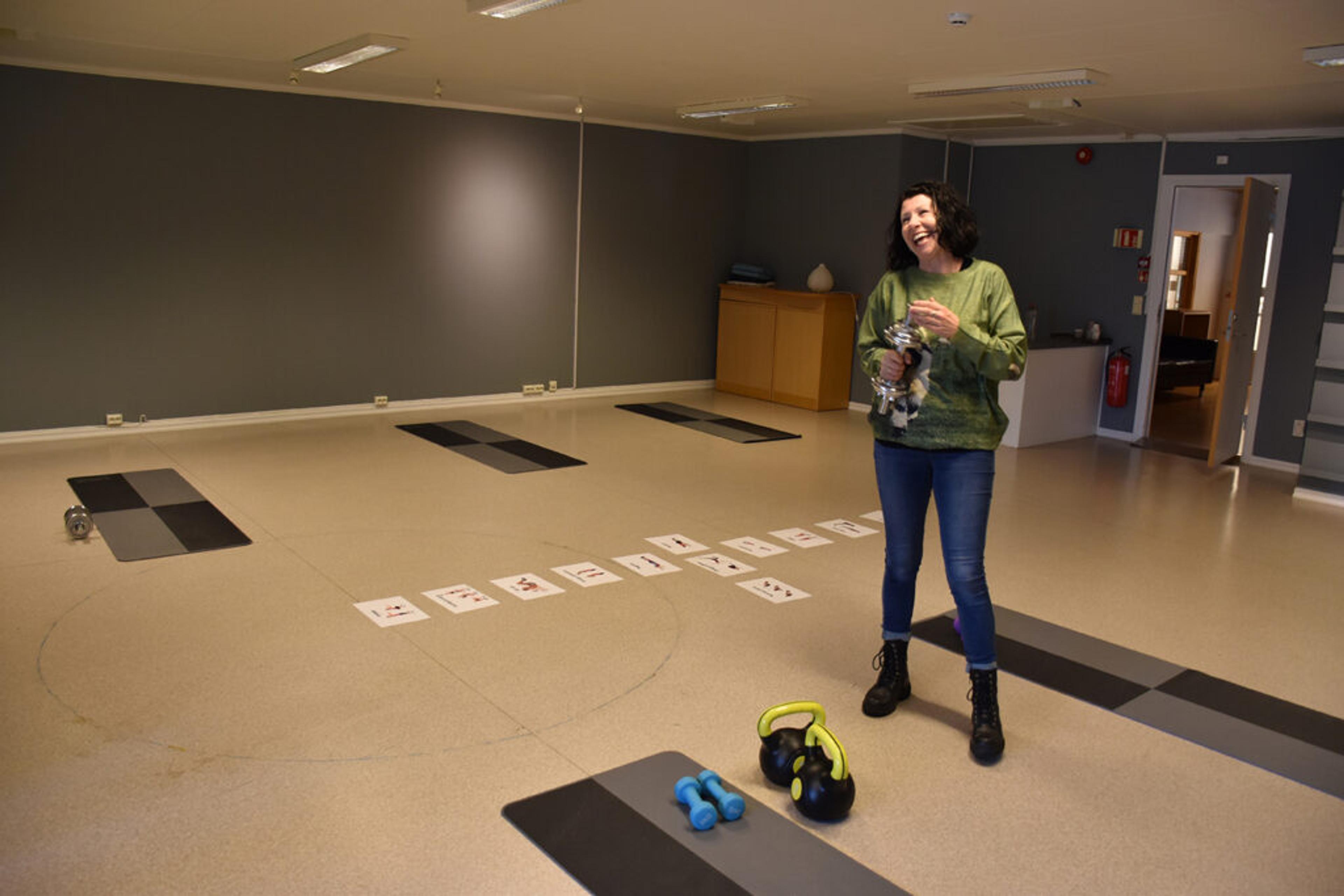 UTVIDER VED BEHOV: Et flott treningsrom kommer til nytte i 2. etasje. – Her har vi plass til maks ti personer, men skulle vi bli flere så bare oppretter vi ei treningsgruppe til, forteller Linda. Foto: Stian Ormestad, ReAvisa.