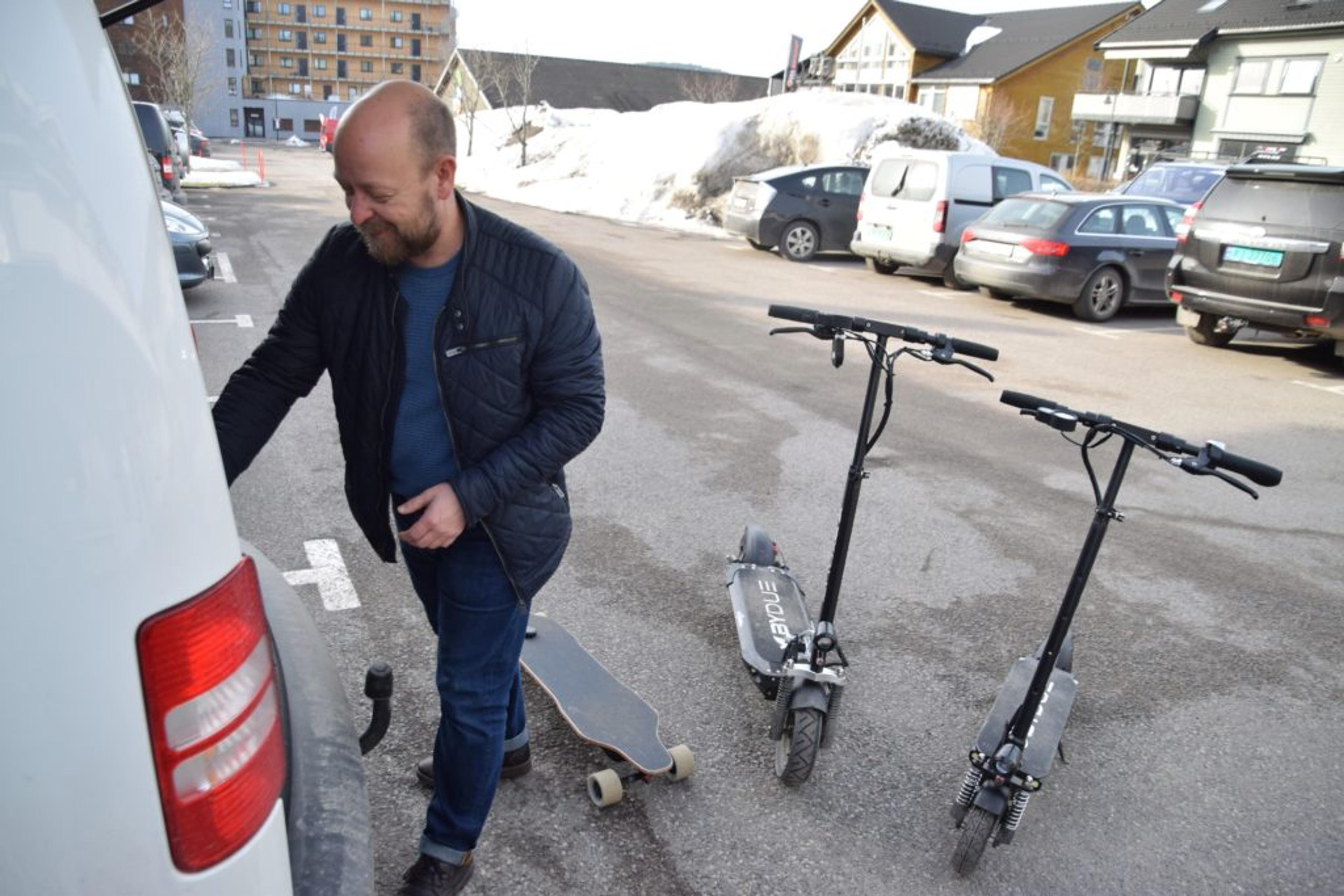 FART OG SPENNING: Tore Henden (47) ramla mer eller mindre over ideen om å satse på elektriske duppedingser – som for eksempel elektriske sparkesykler.