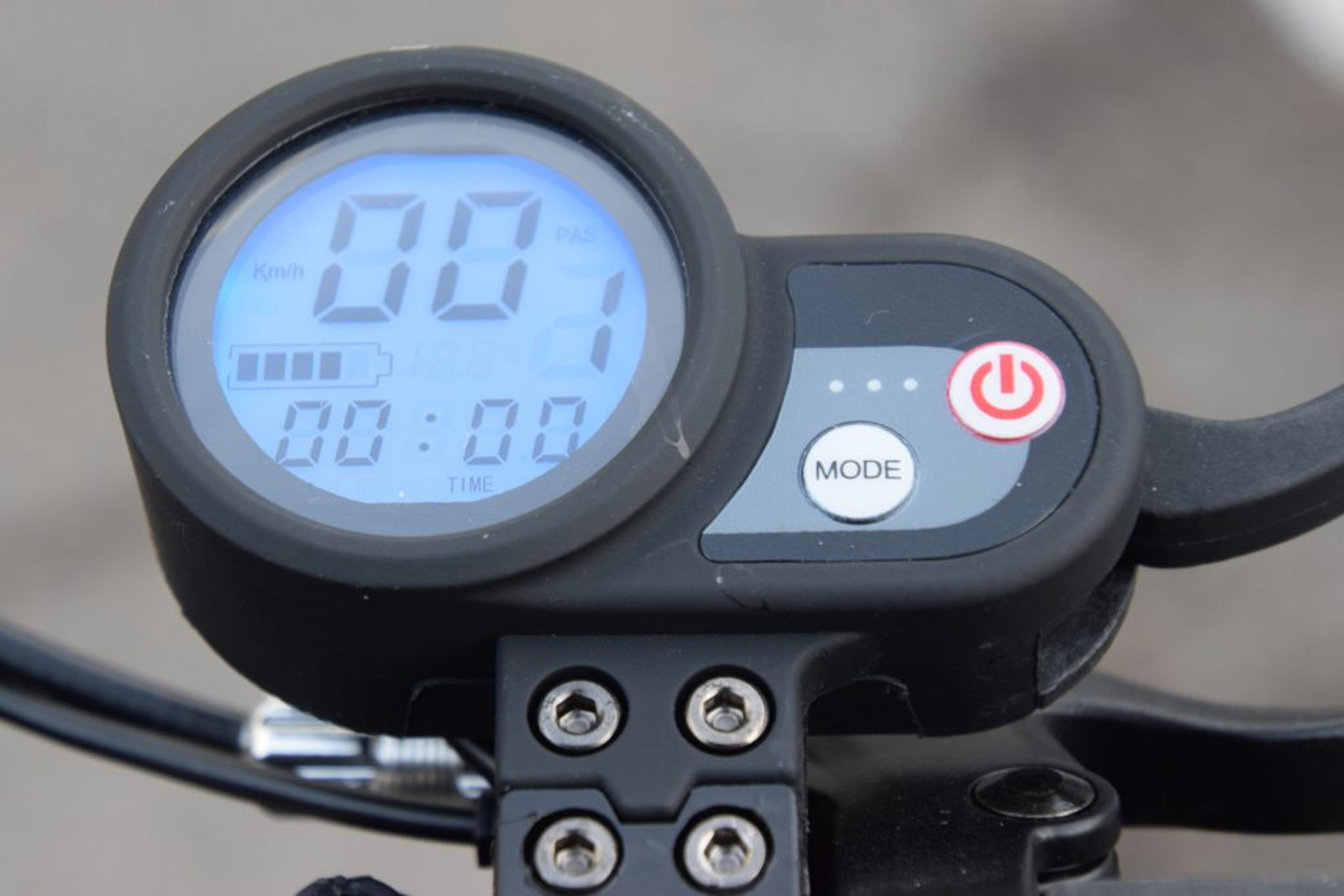 FJERNKONTROLL: I handa holder du en liten duppedings som kan justere farta på den elektriske motoren.